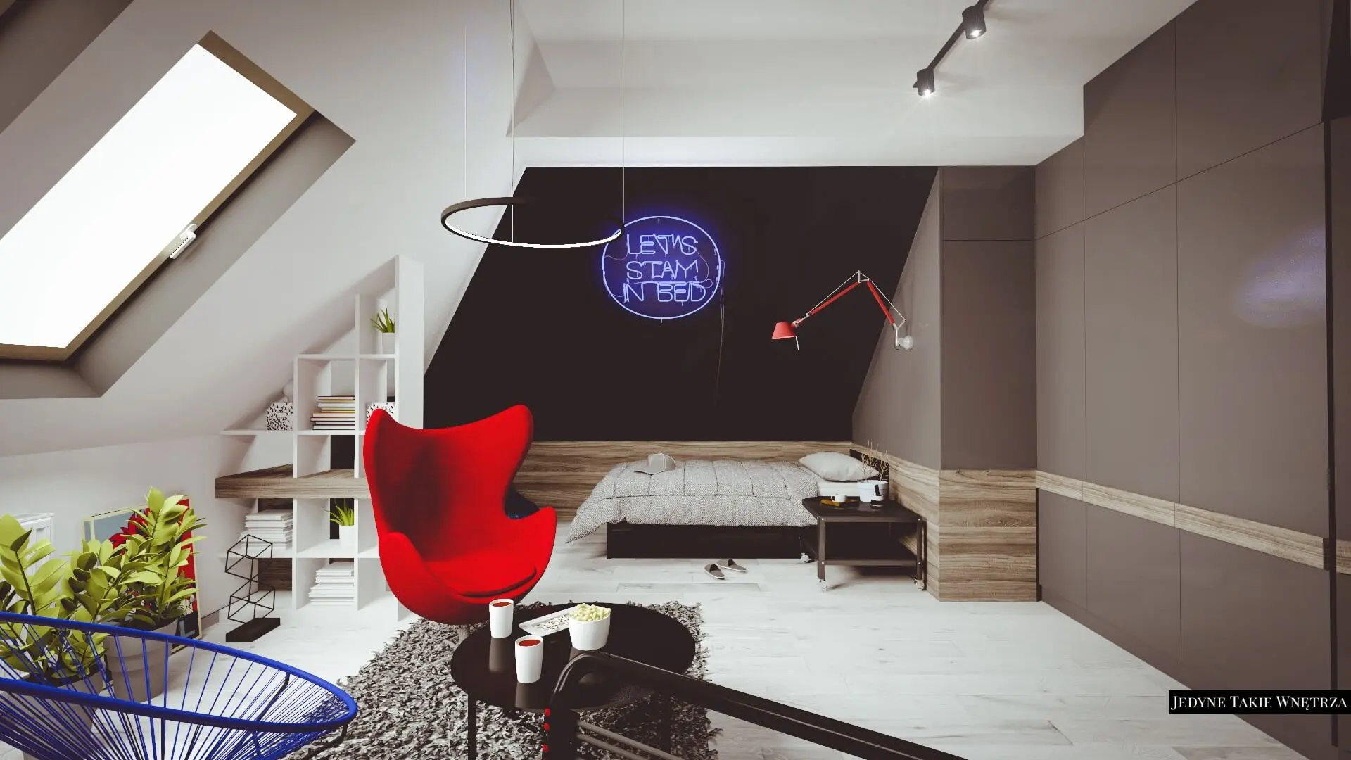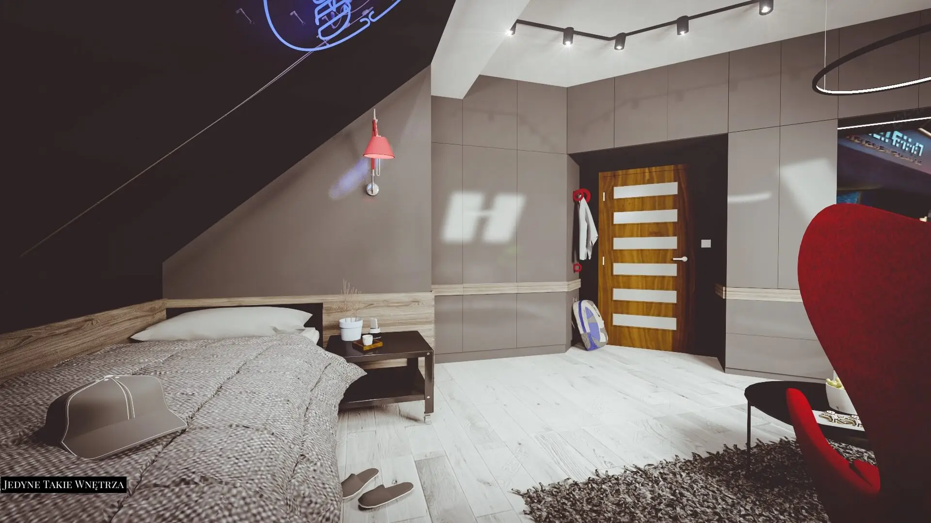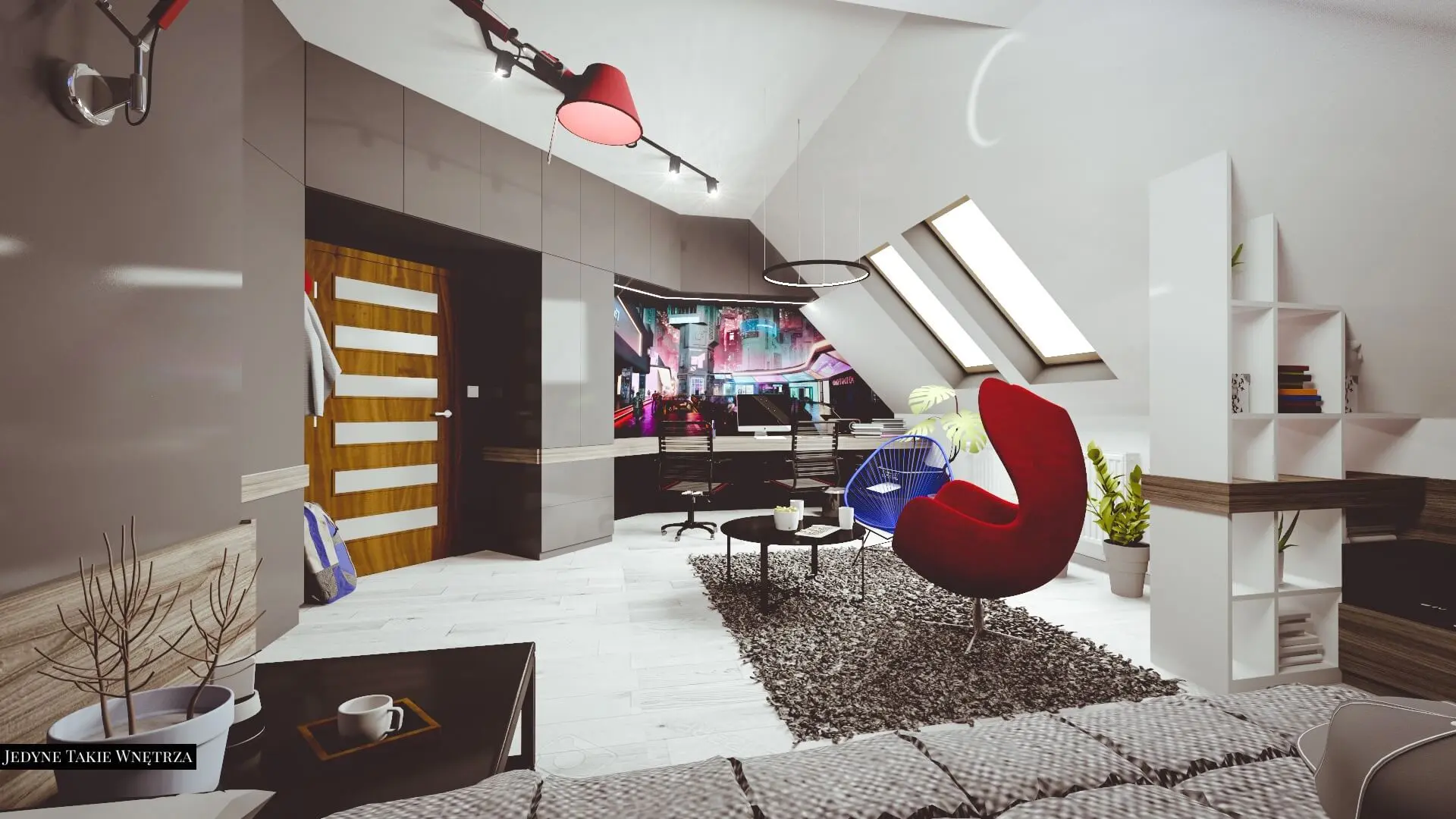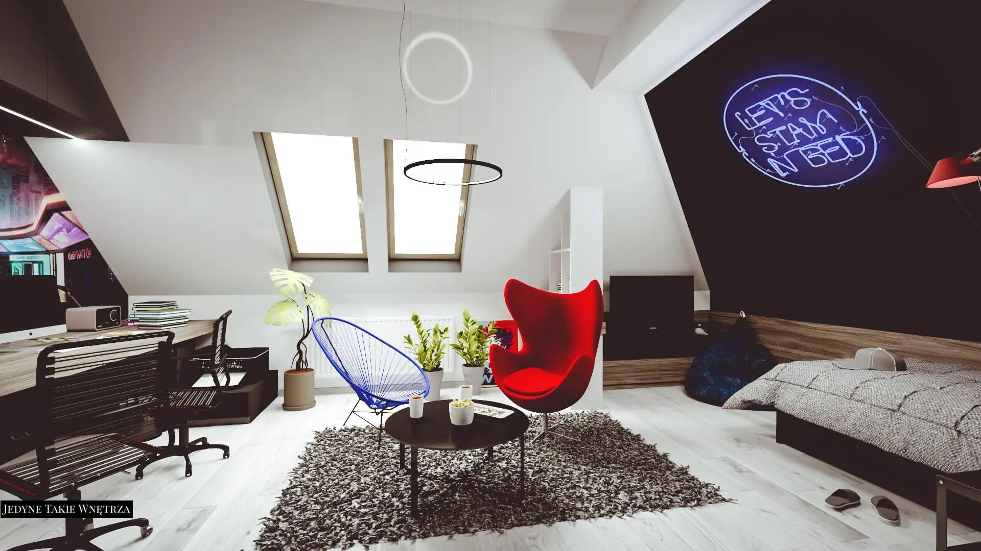Aranżacja pokoju nastolatka na poddaszu.
