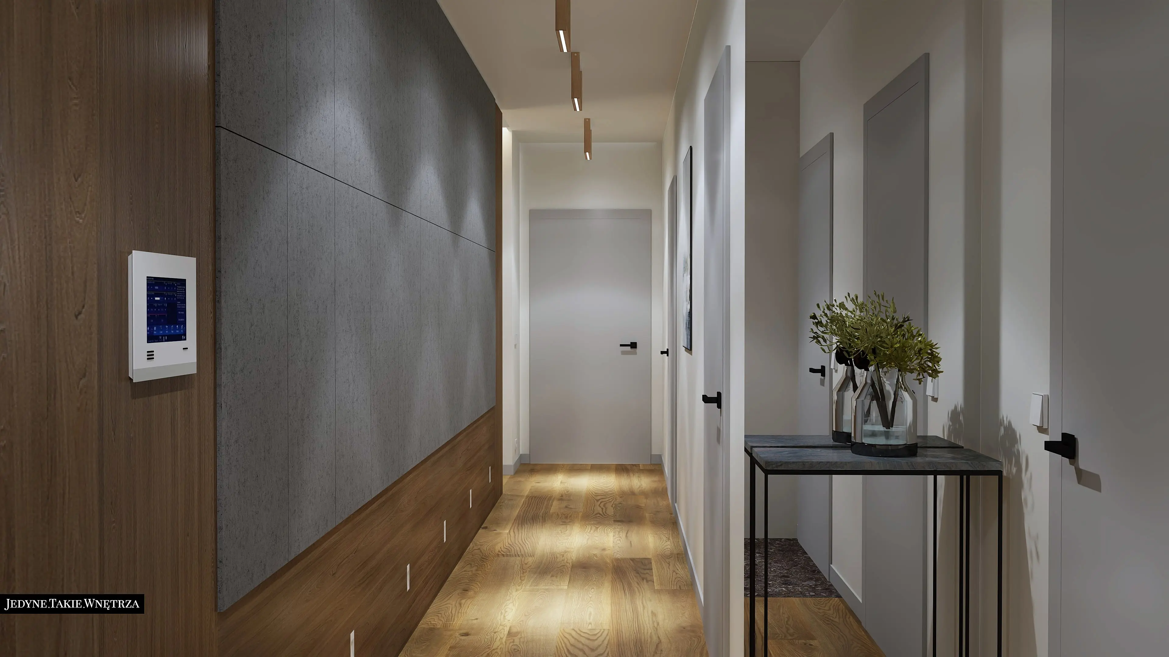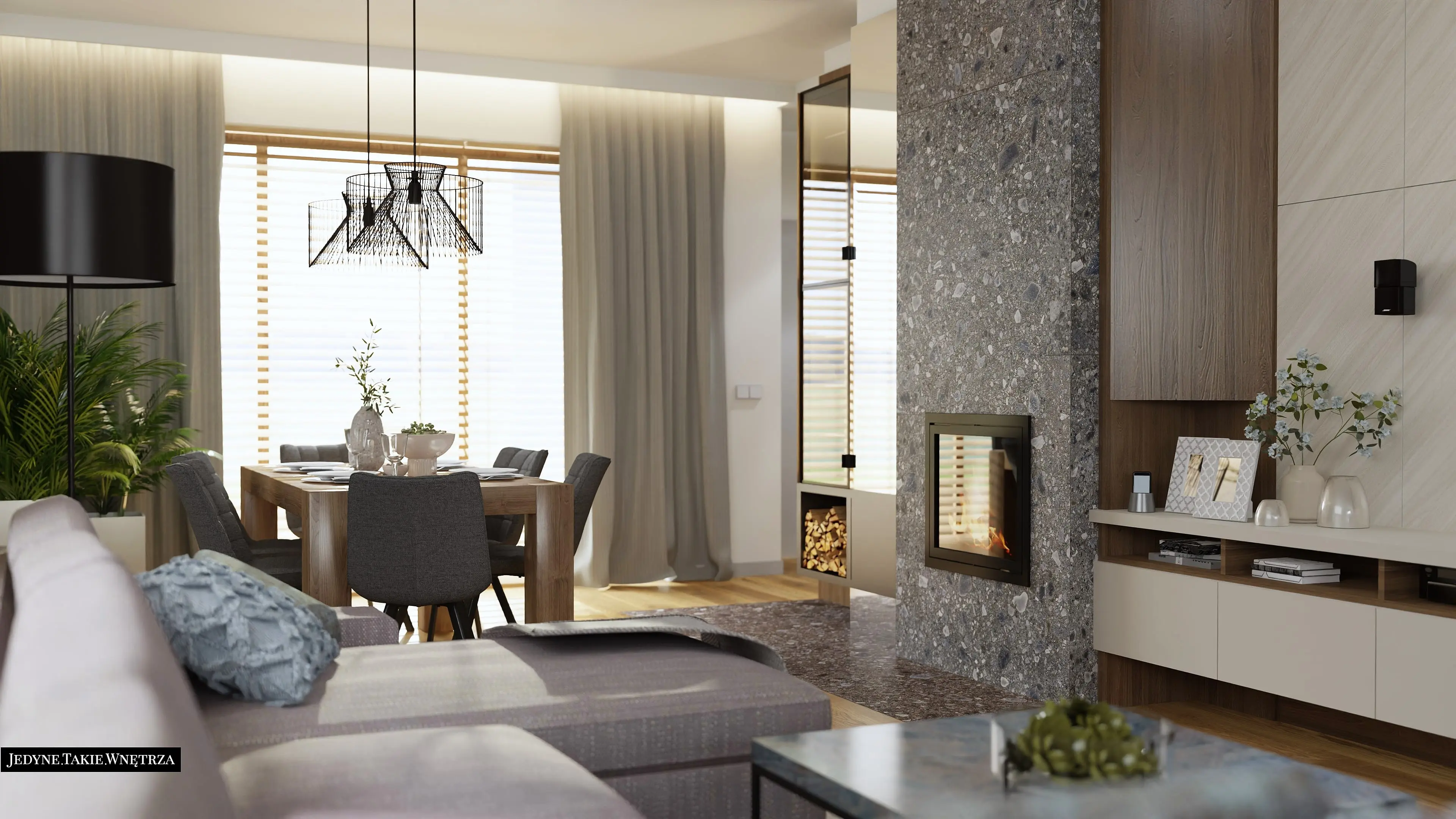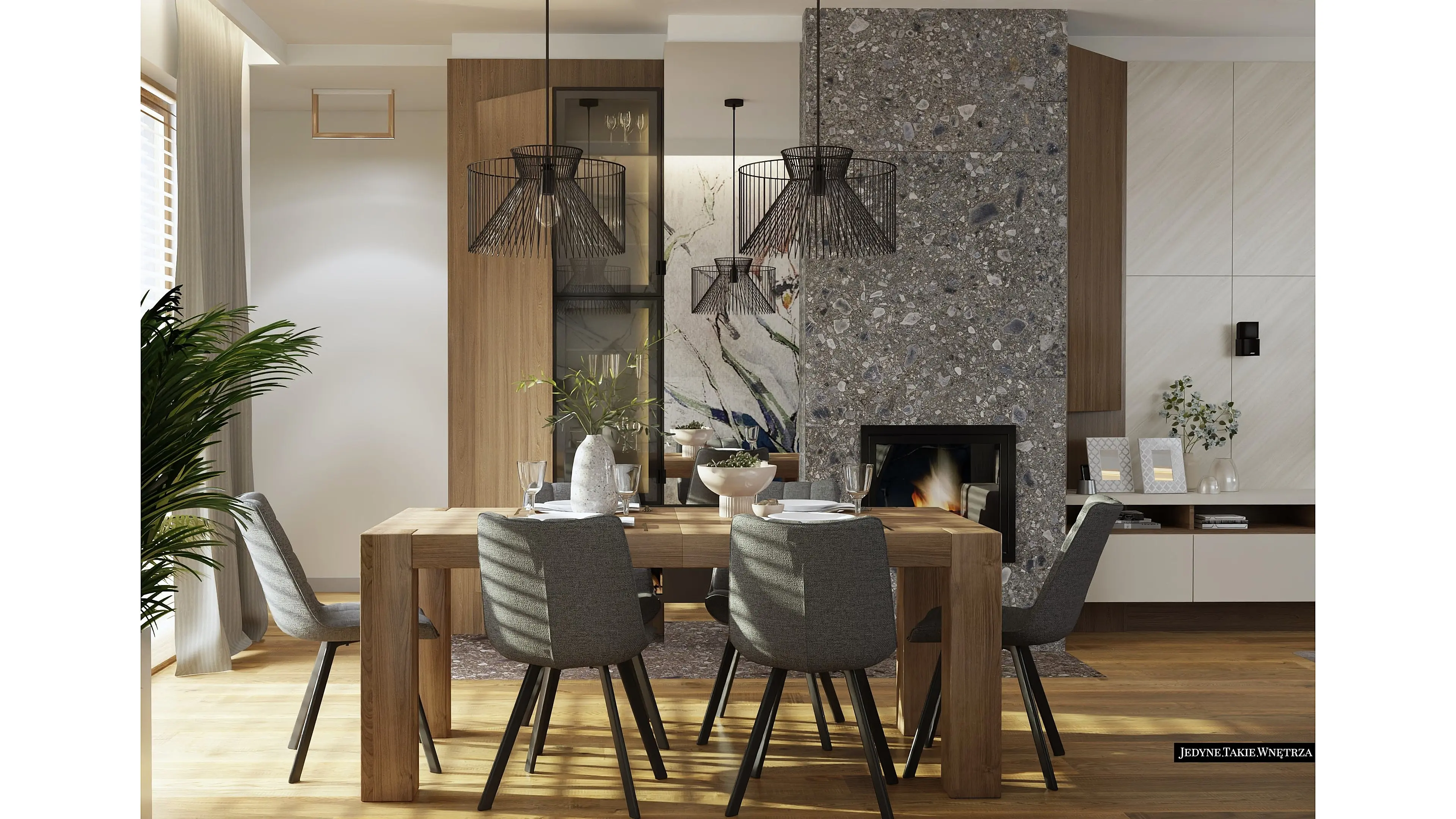 Zieleń&miedź w otoczeniu naturalnej deski – projekt wnętrz domu Gdańsk