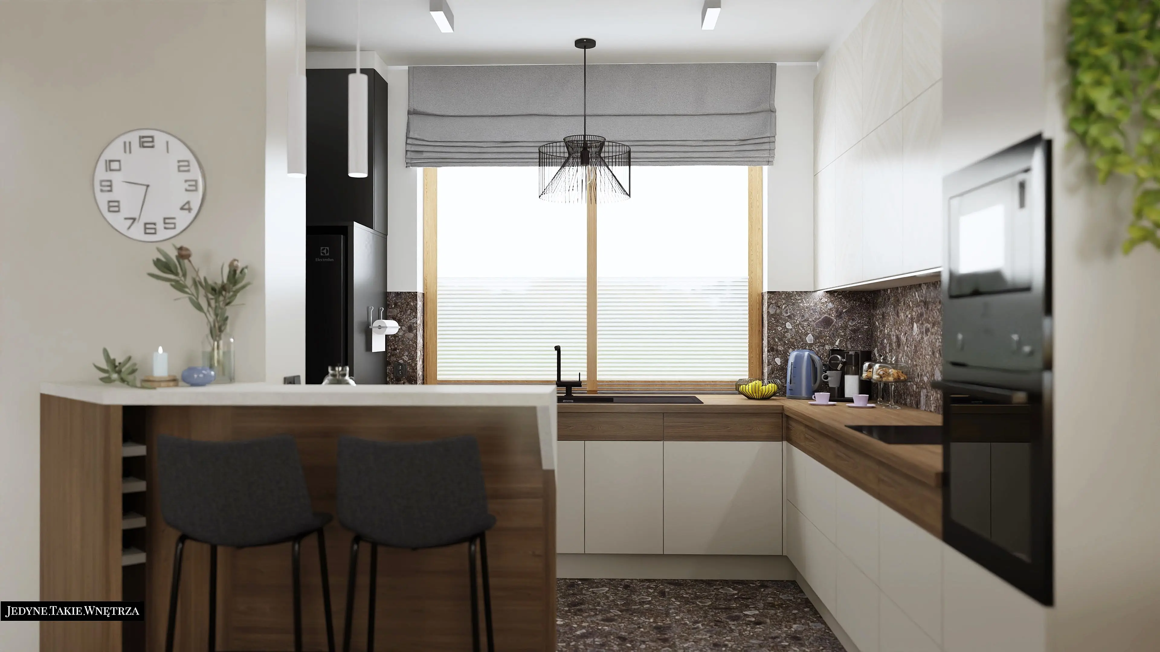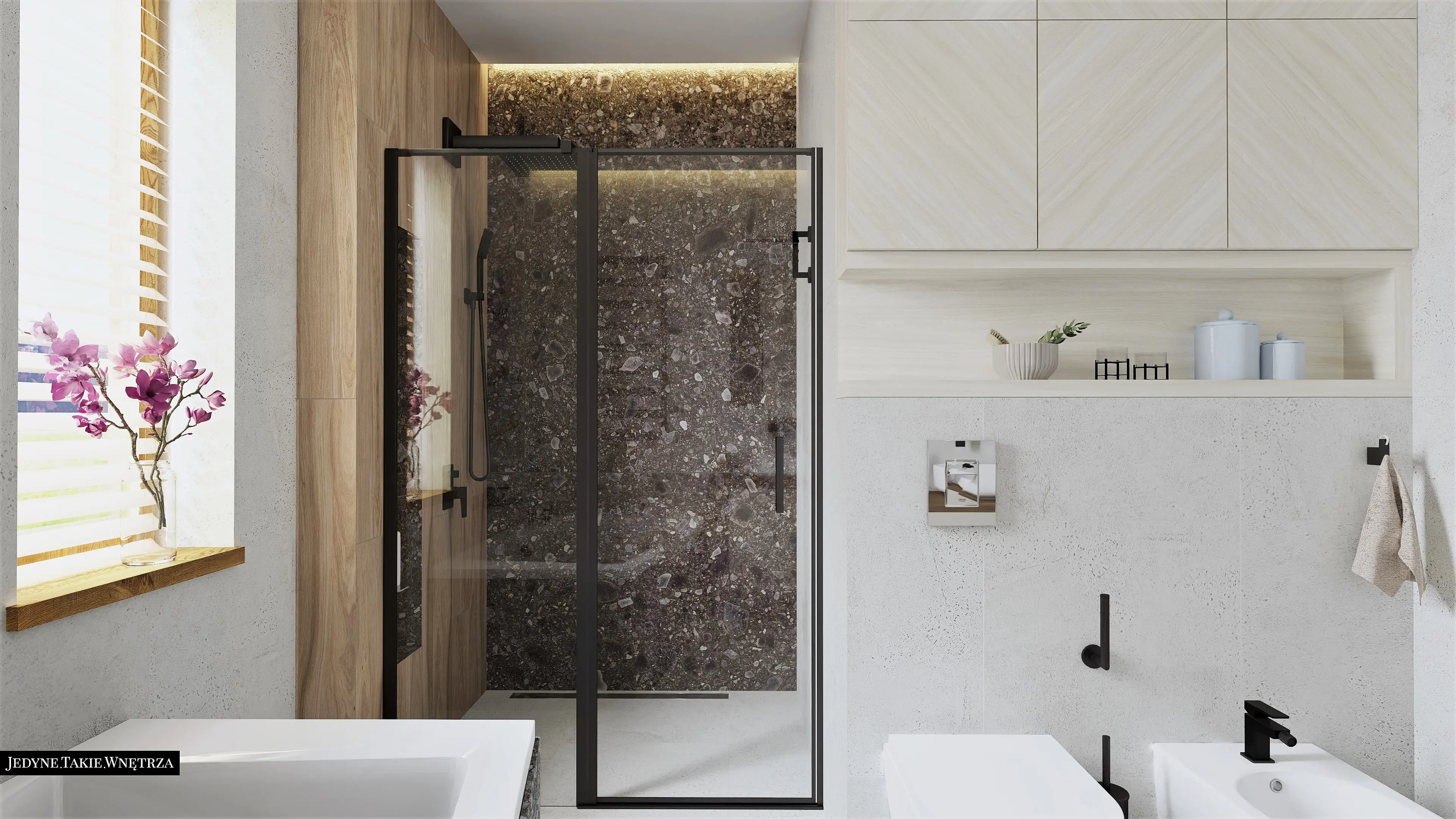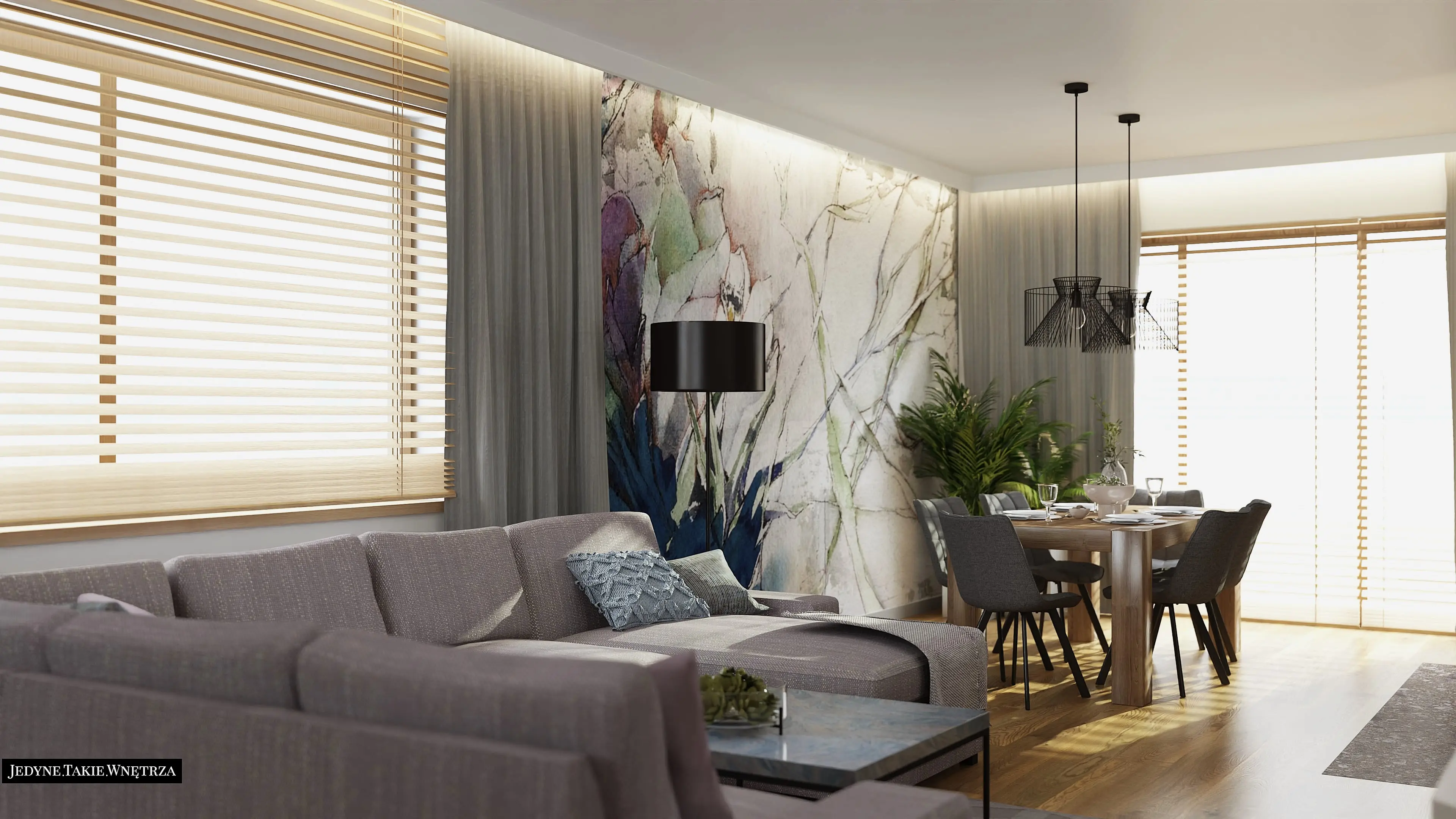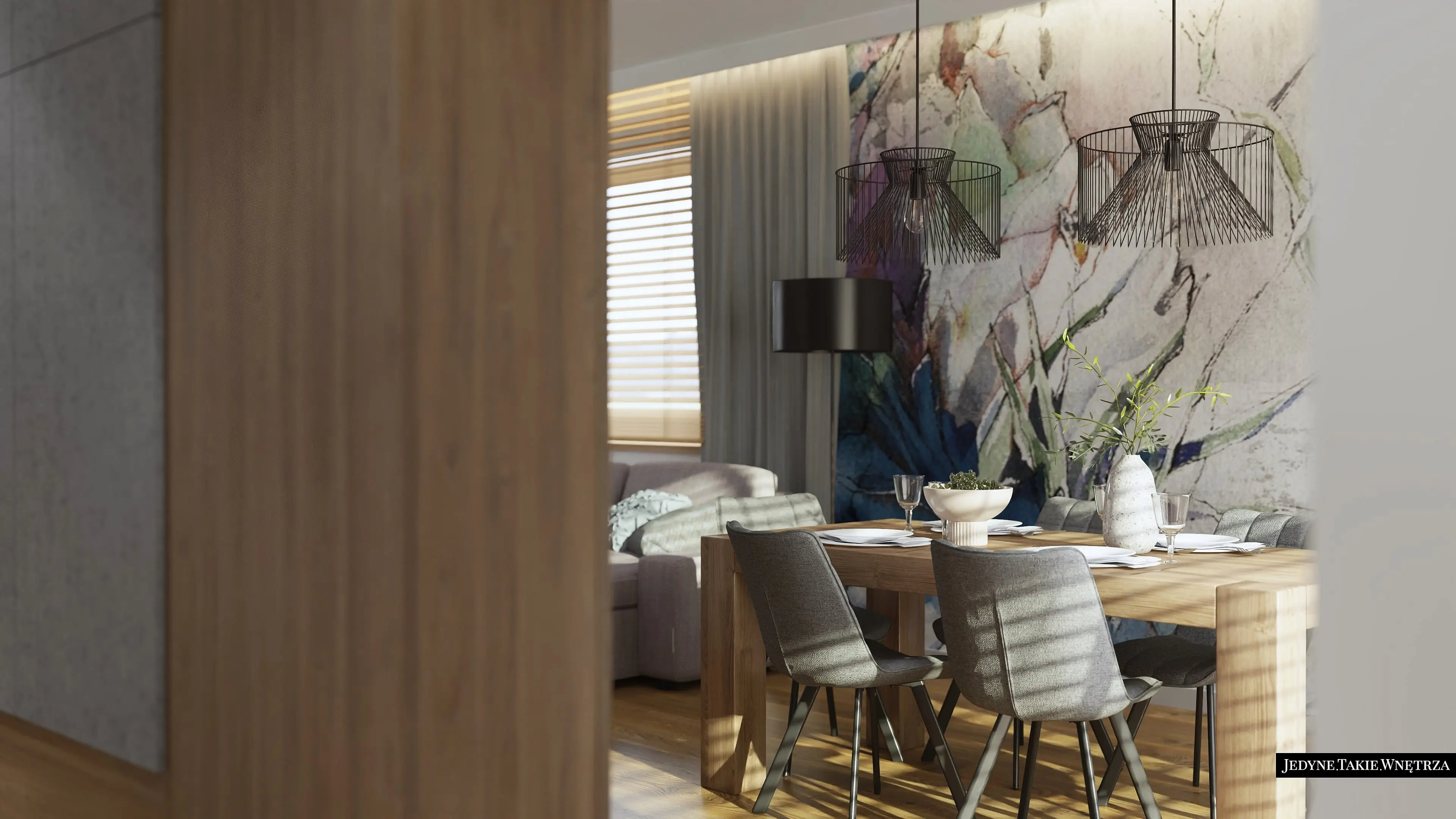 Zieleń&miedź w otoczeniu naturalnej deski – projekt wnętrz domu Gdańsk