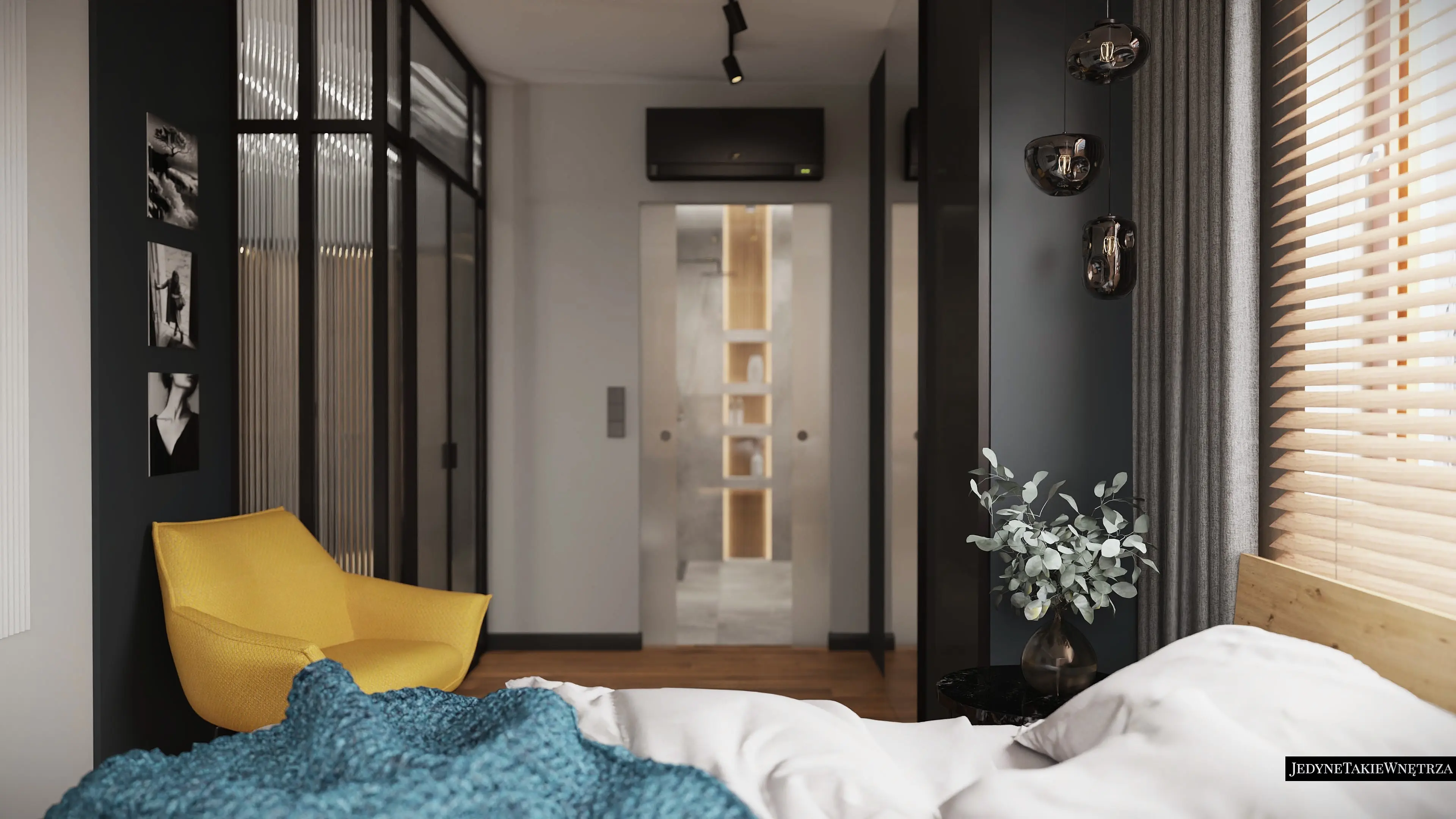 Projekt sypialni i gabinetu w stylu loftowym stanowi część