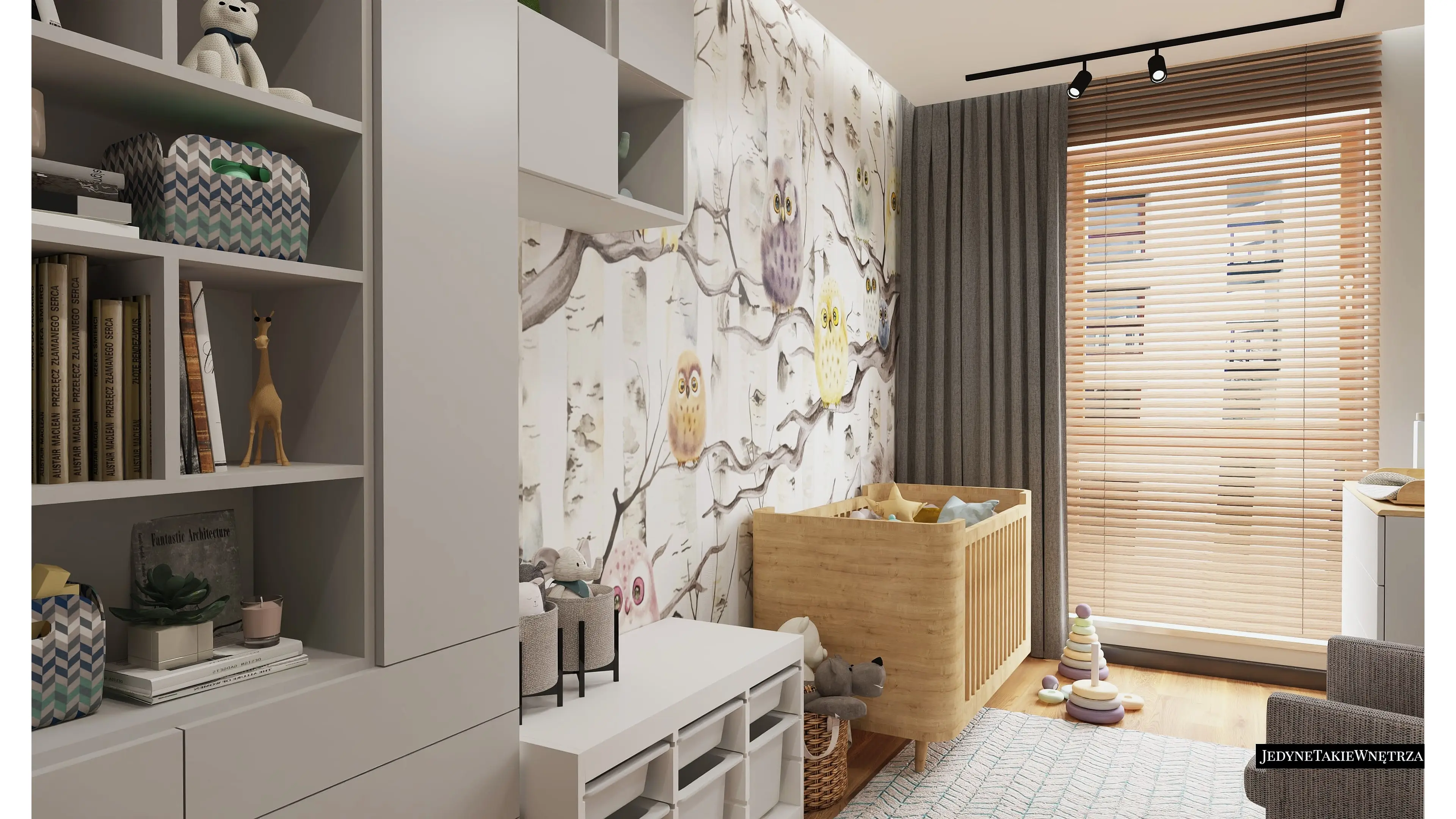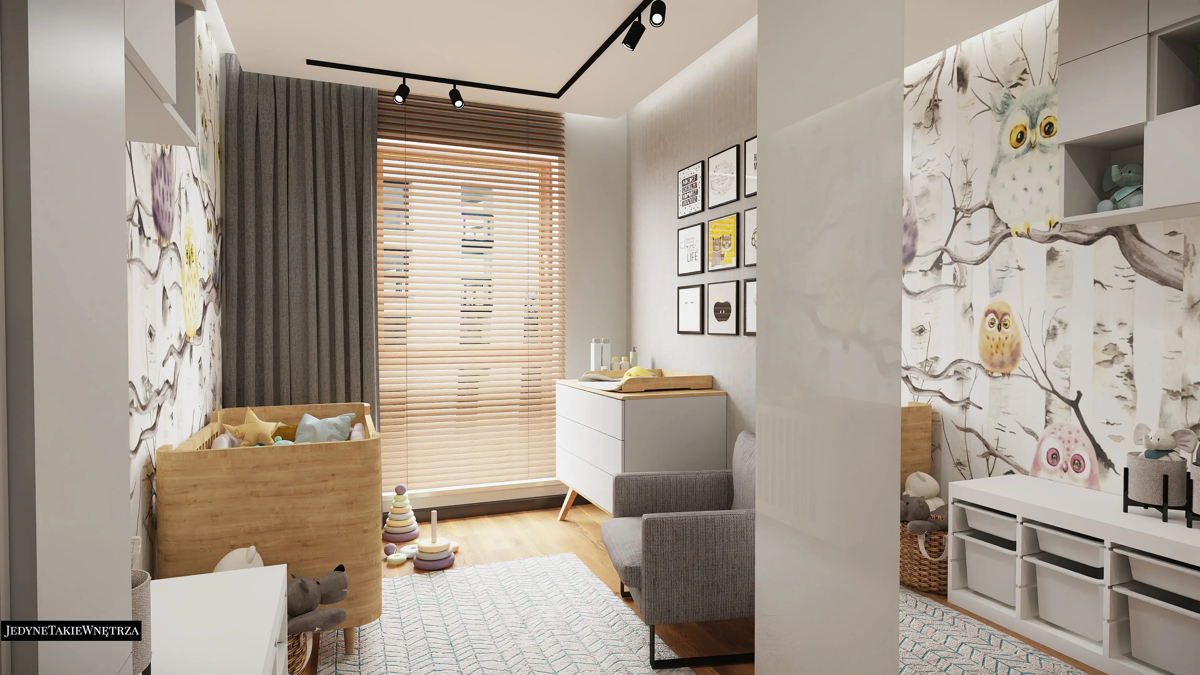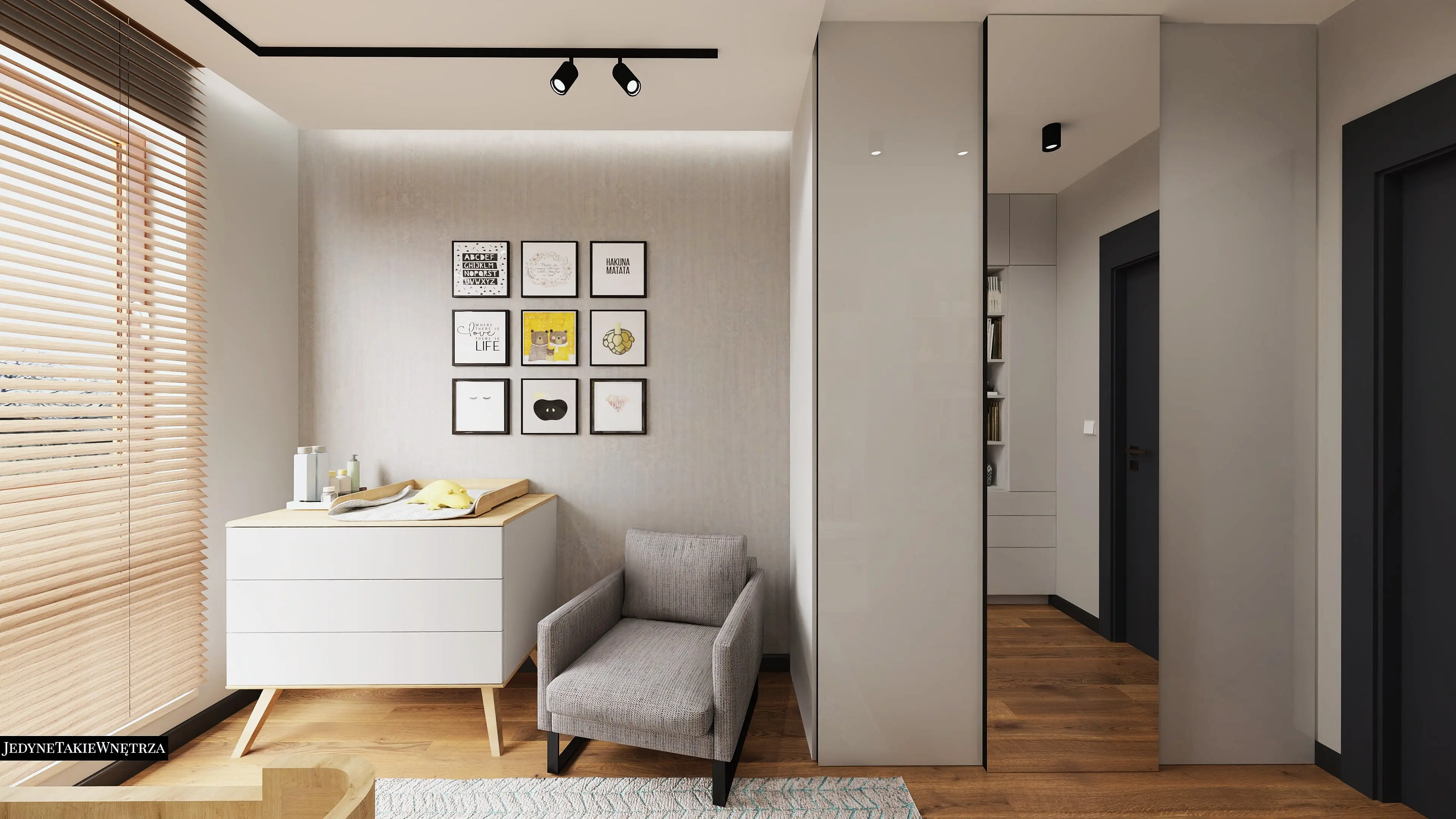 Projekt pokoju dla niemowlęcia i wersja dla starszego dziecka stanowią część projektu wnętrza mieszkania w Gdańsku w stylu loftowym.