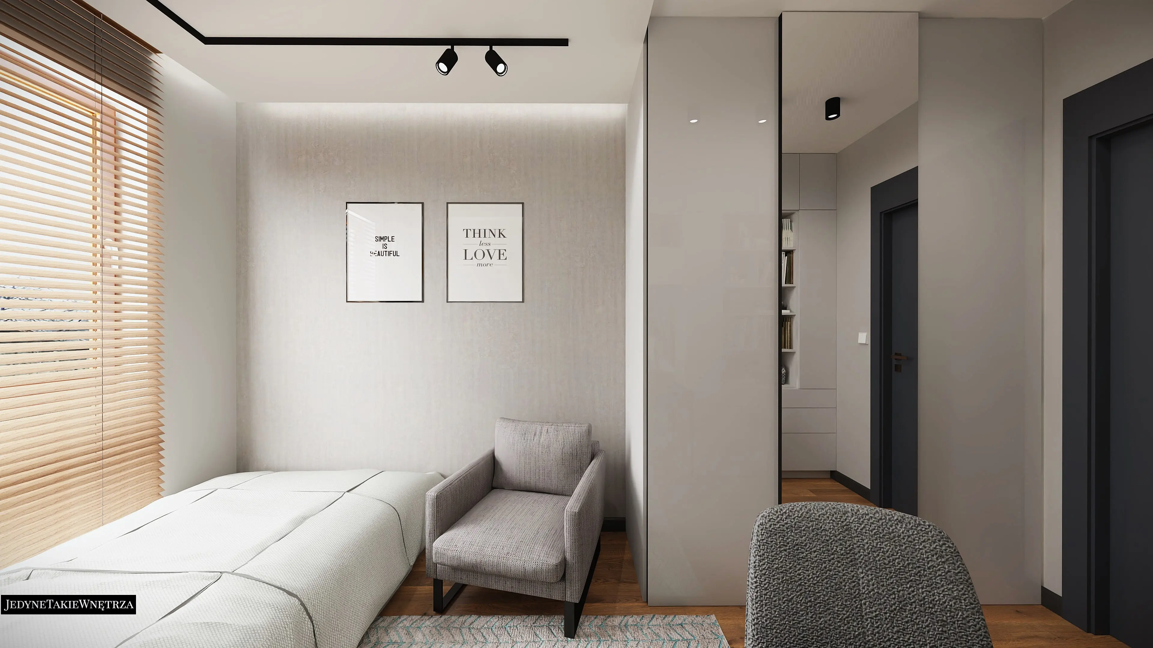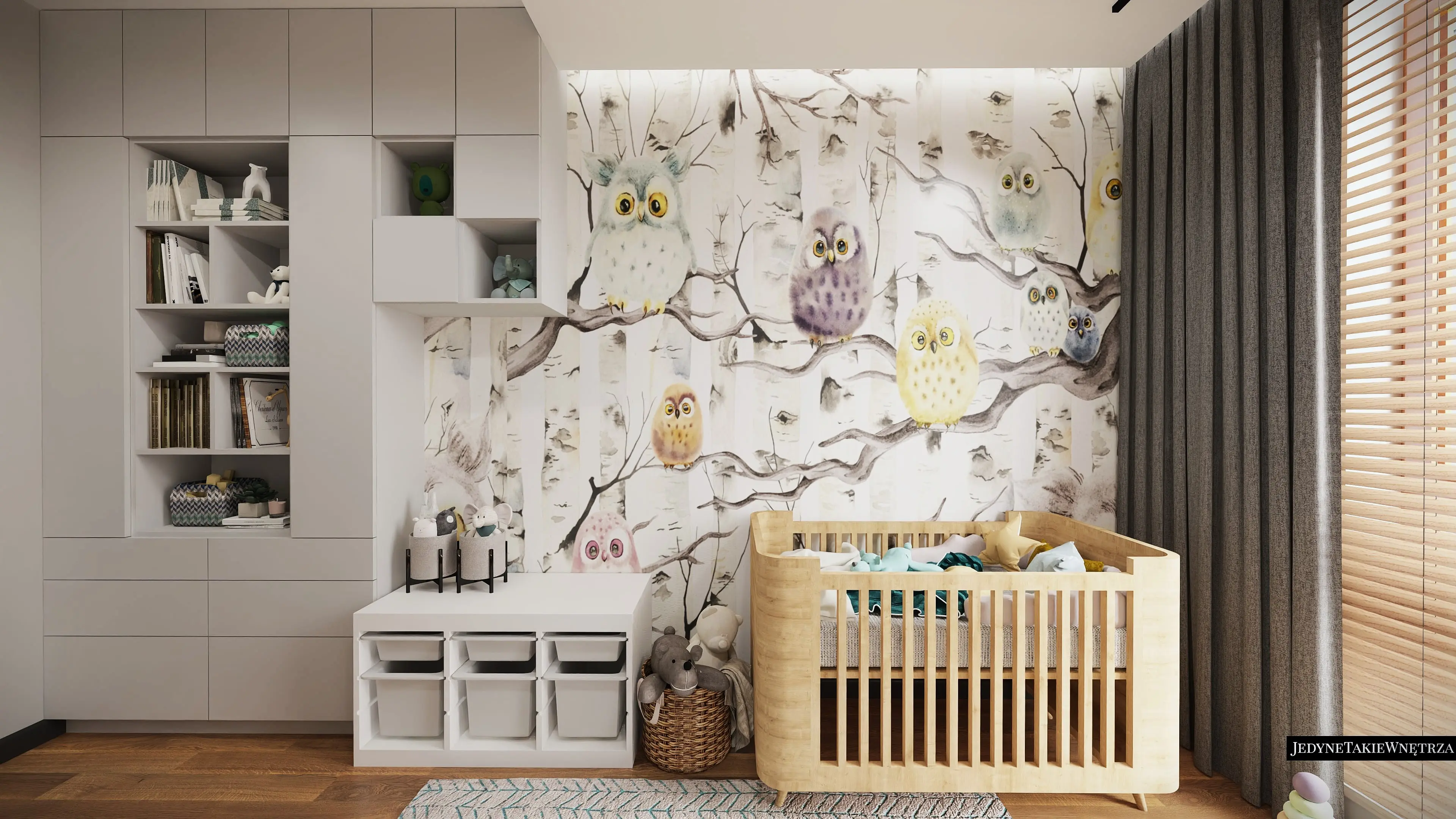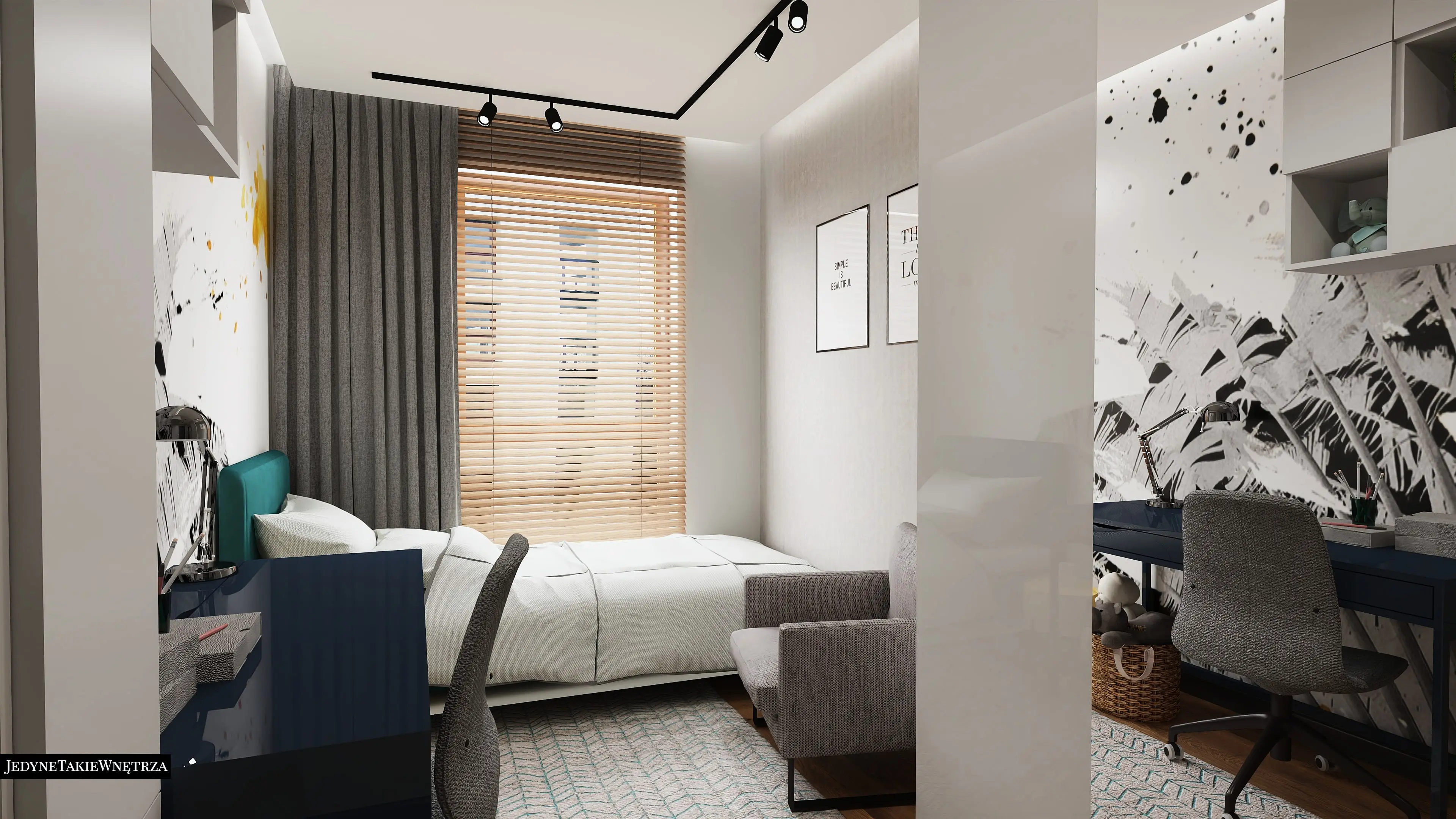 Projekt pokoju dla niemowlęcia i wersja dla starszego dziecka stanowią część projektu wnętrza mieszkania w Gdańsku w stylu loftowym.