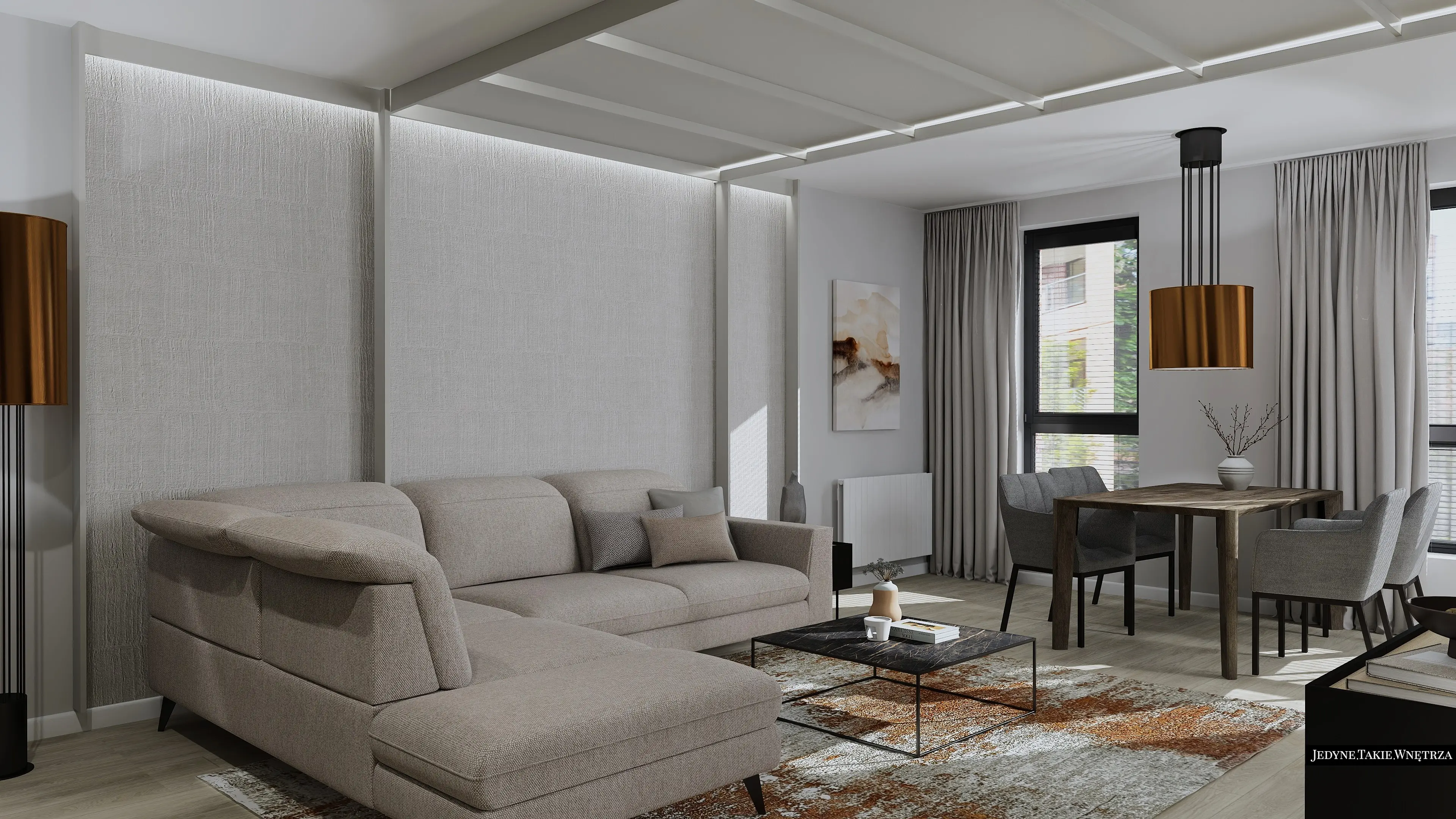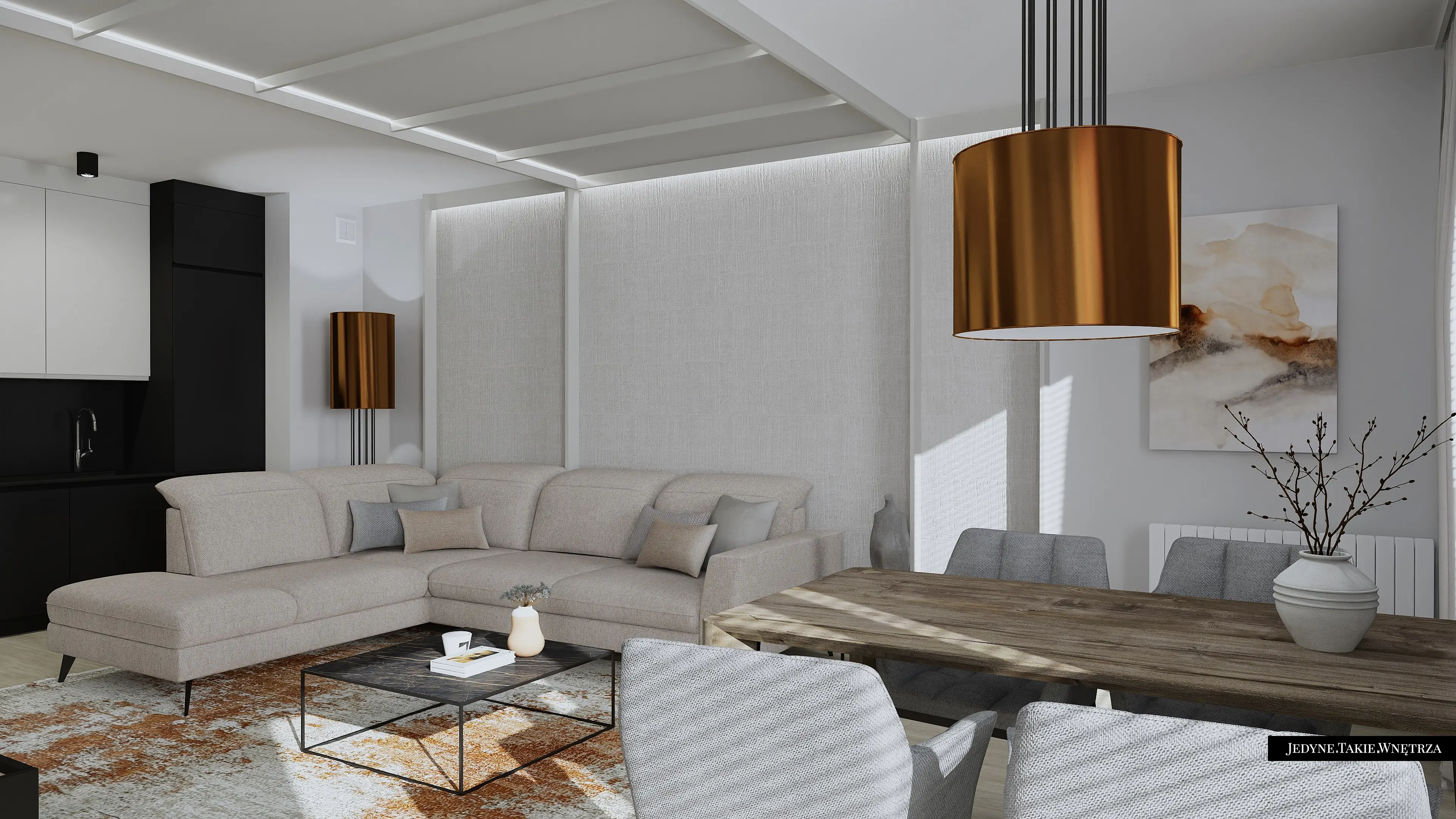 Nowoczesne wnętrza salonu i sypialni w Gdańsku.