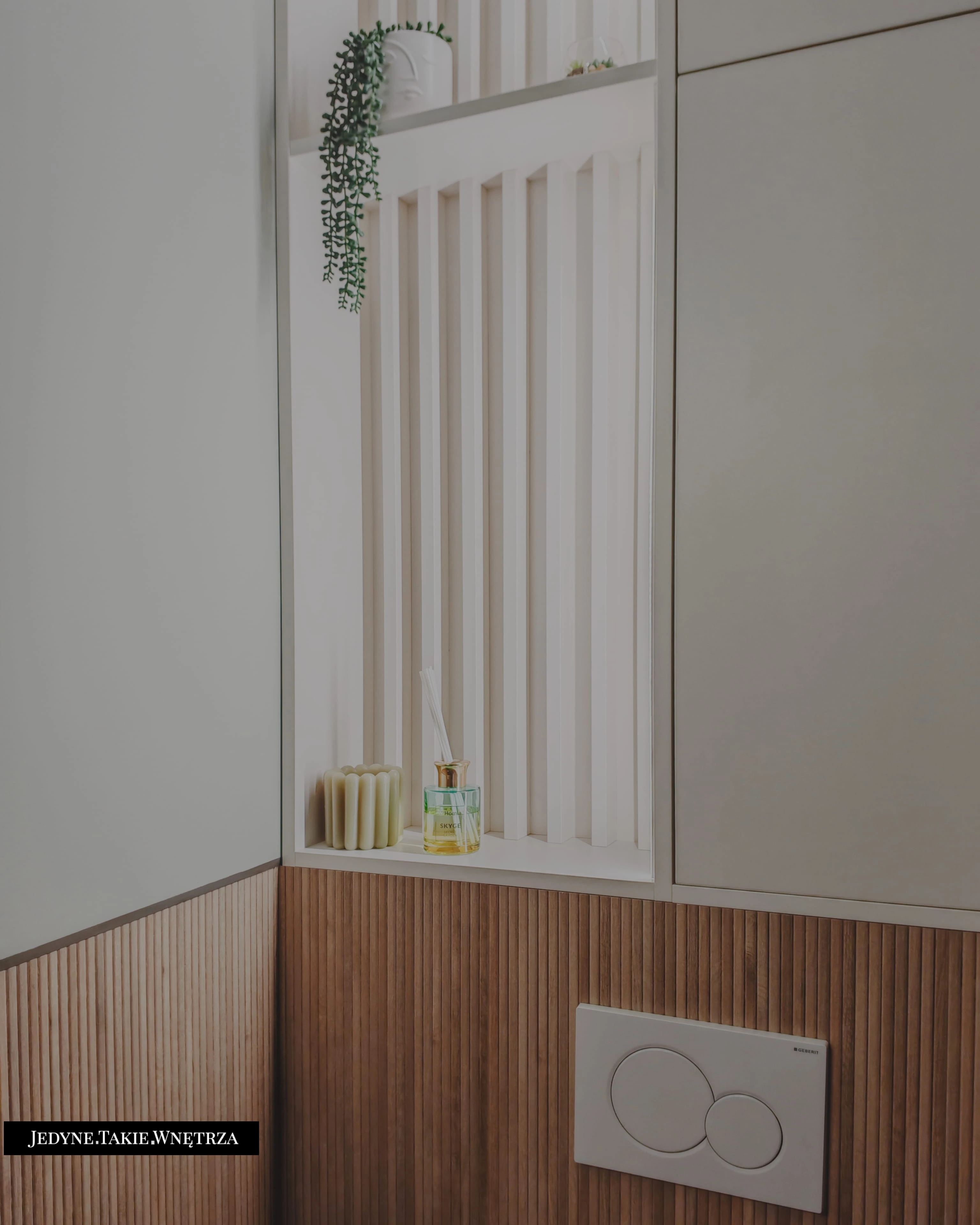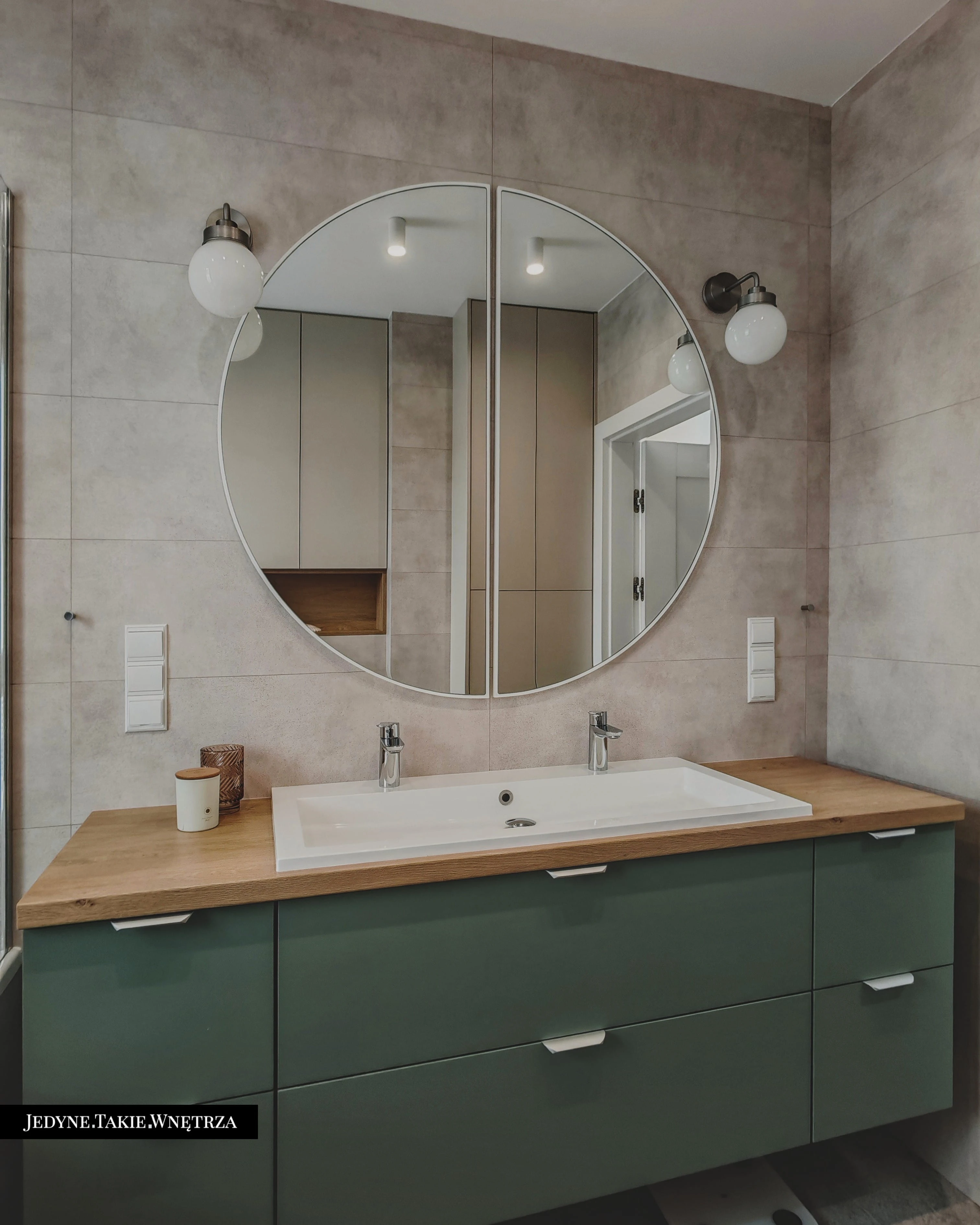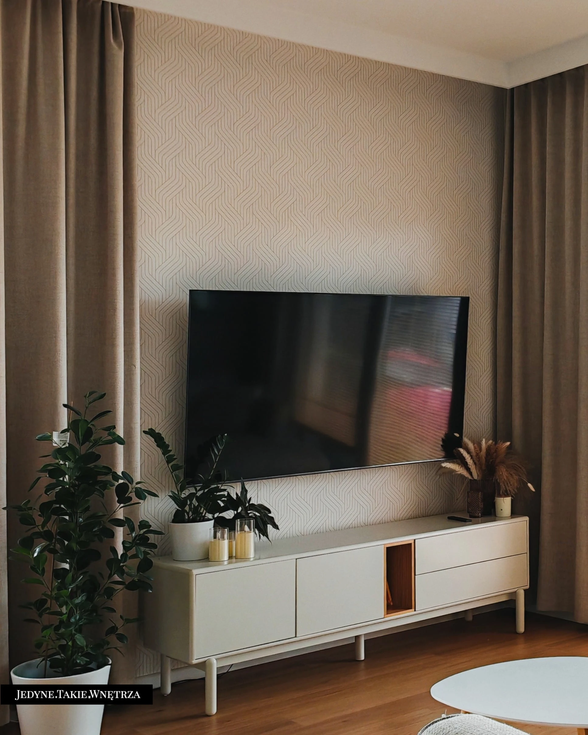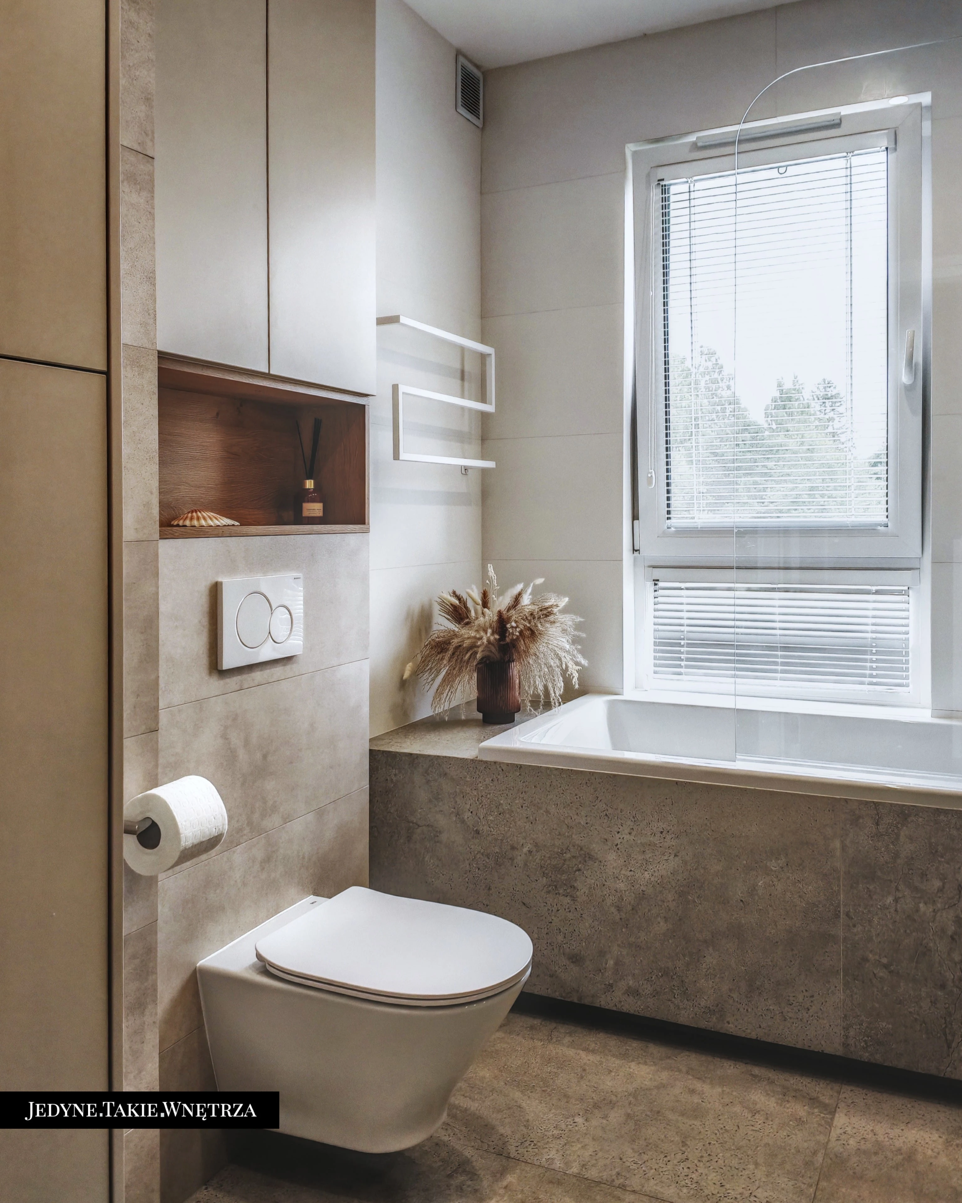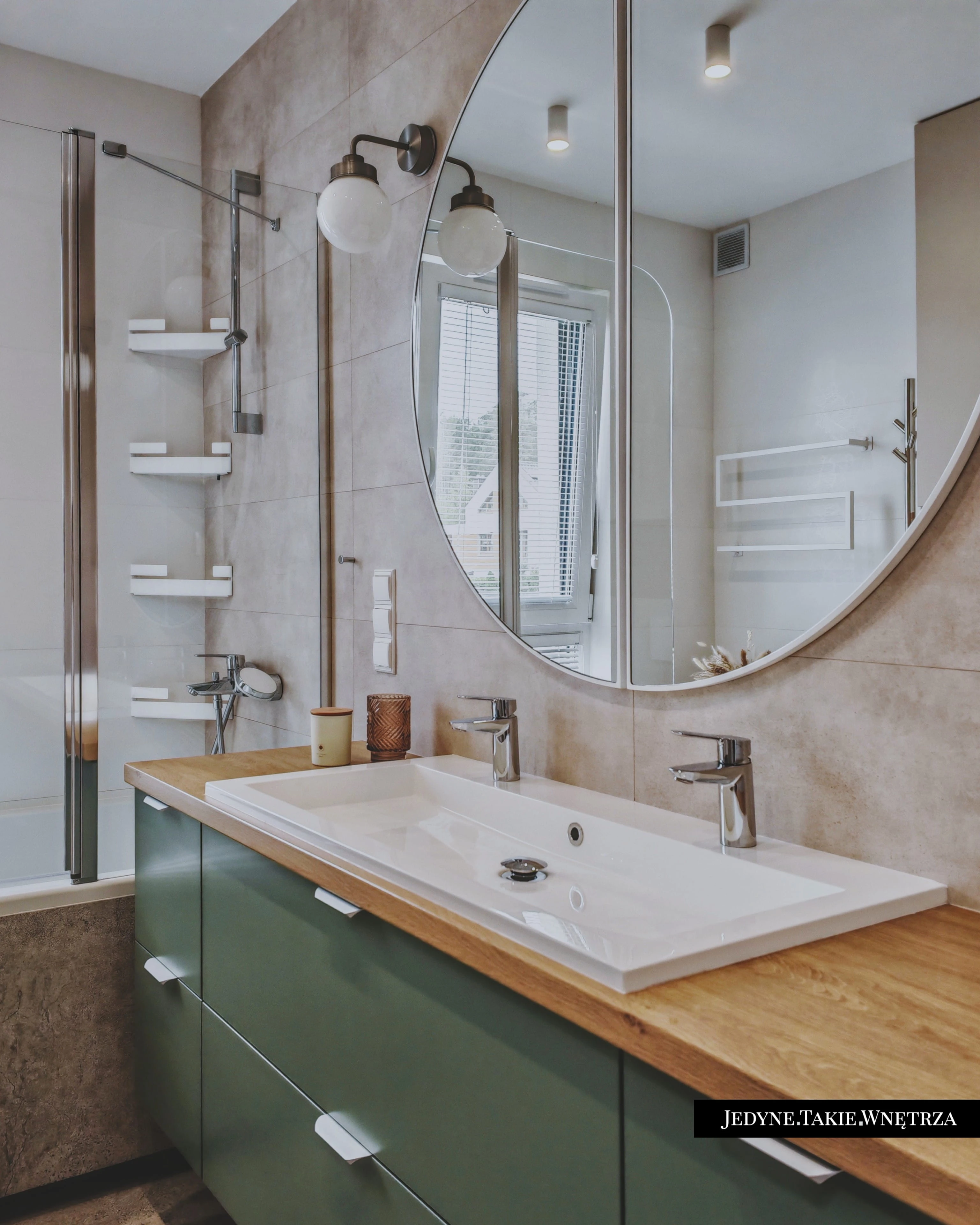 Eklektyczny projekt wnętrza domu jednorodzinnego obejmujący strefę dzienną z kuchnią i jadalnią, salon, sypialnię, łazienkę oraz domowe biuro. Jasne drewno, beże i zielone akcenty tworzą funkcjonalną, spokojną i ponadczasową przestrzeń dopasowaną do potrzeb rodziny. Estetyka łączy akcenty stylu boho z skandynawskim nastrojem.