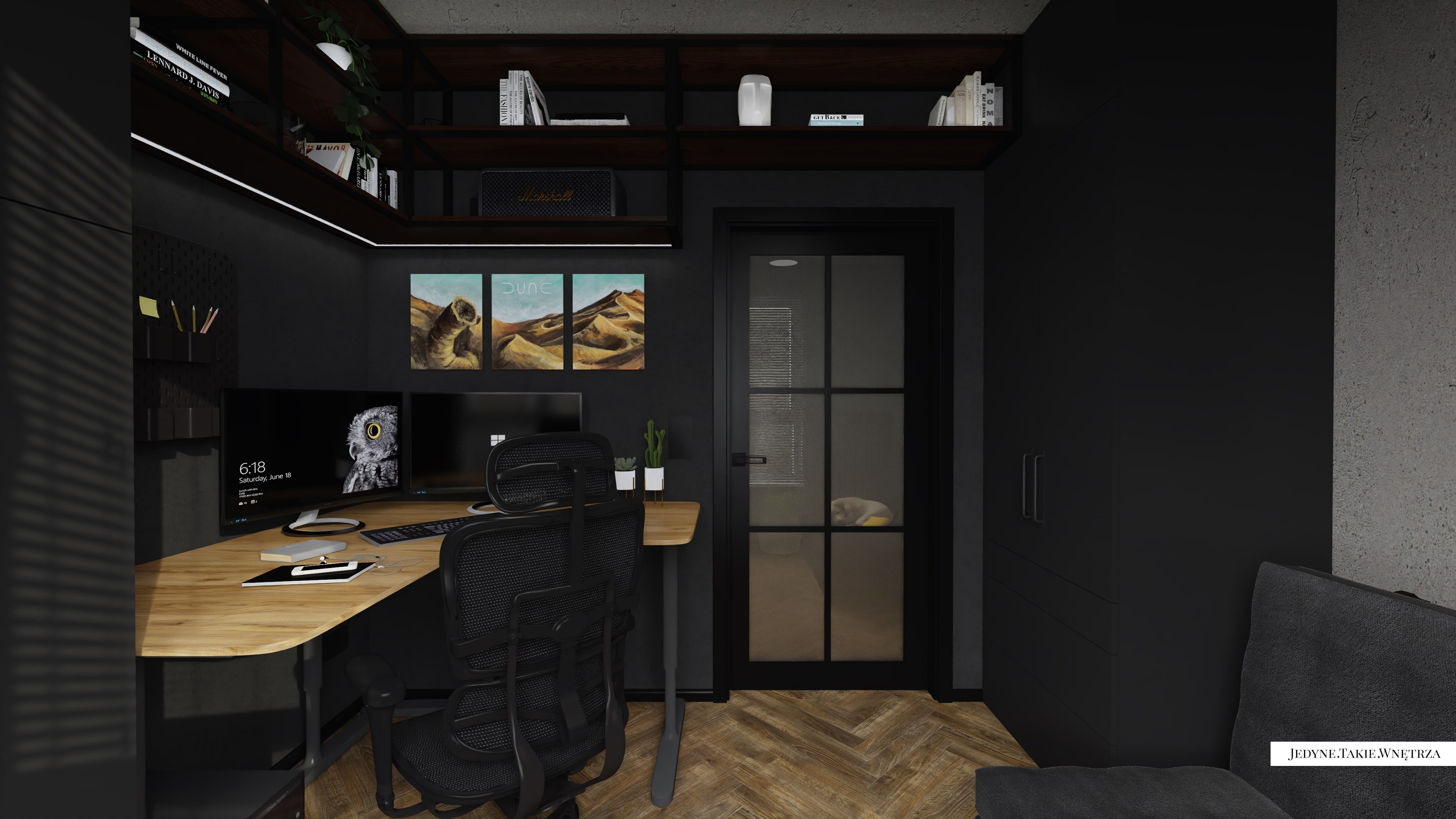 Aranżacja dwóch gabinetów w stylu loftowym stanowią część