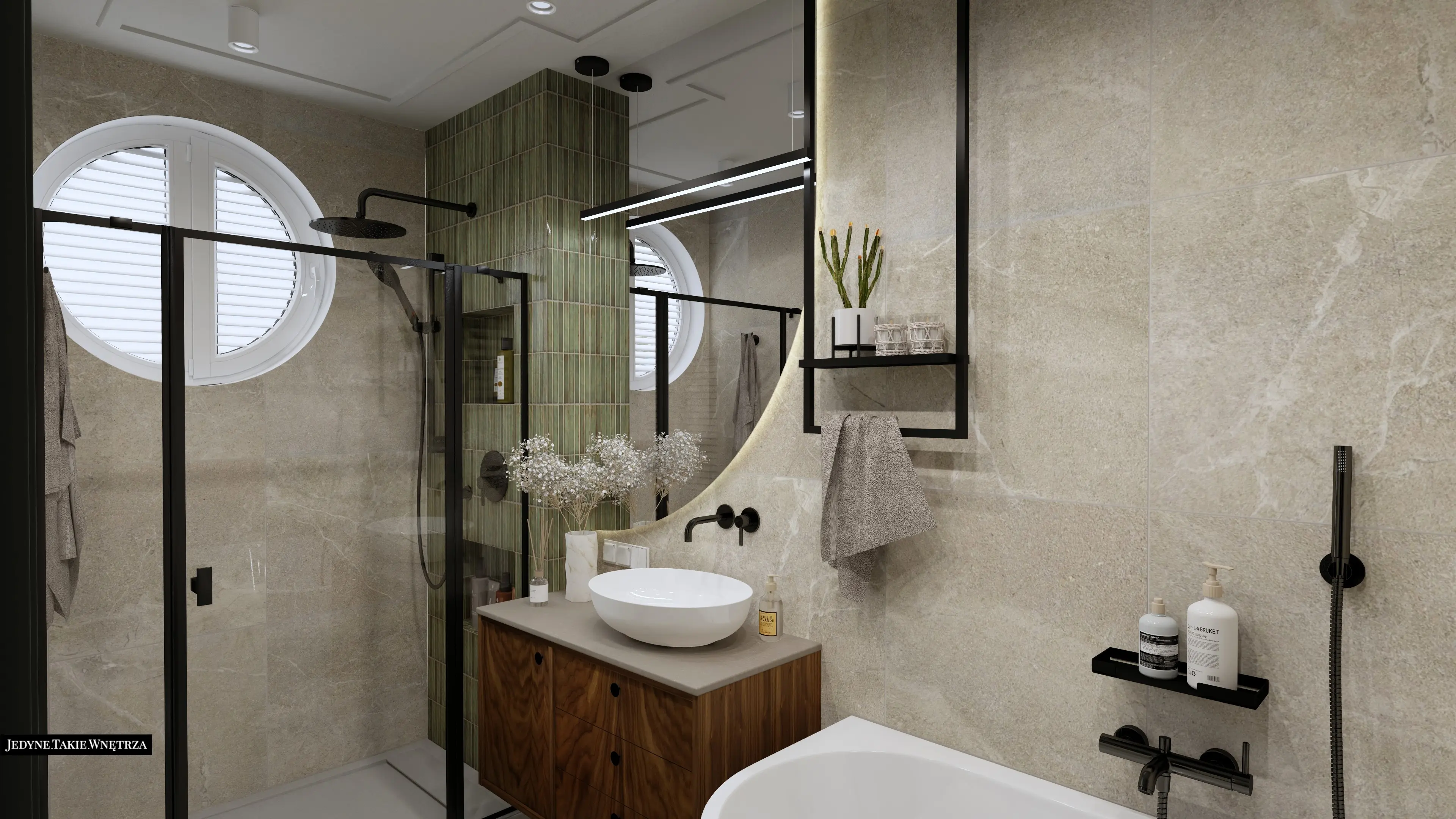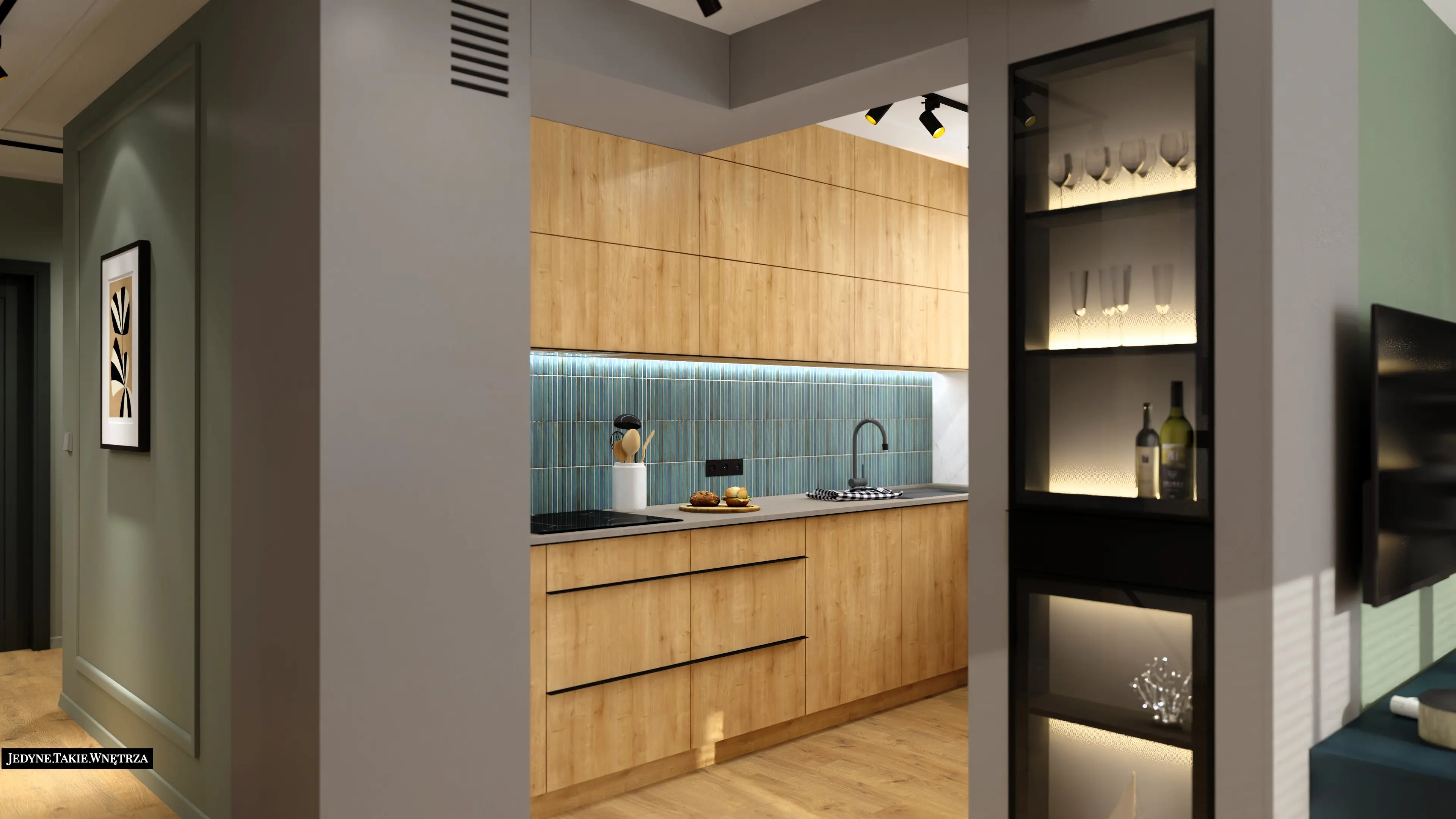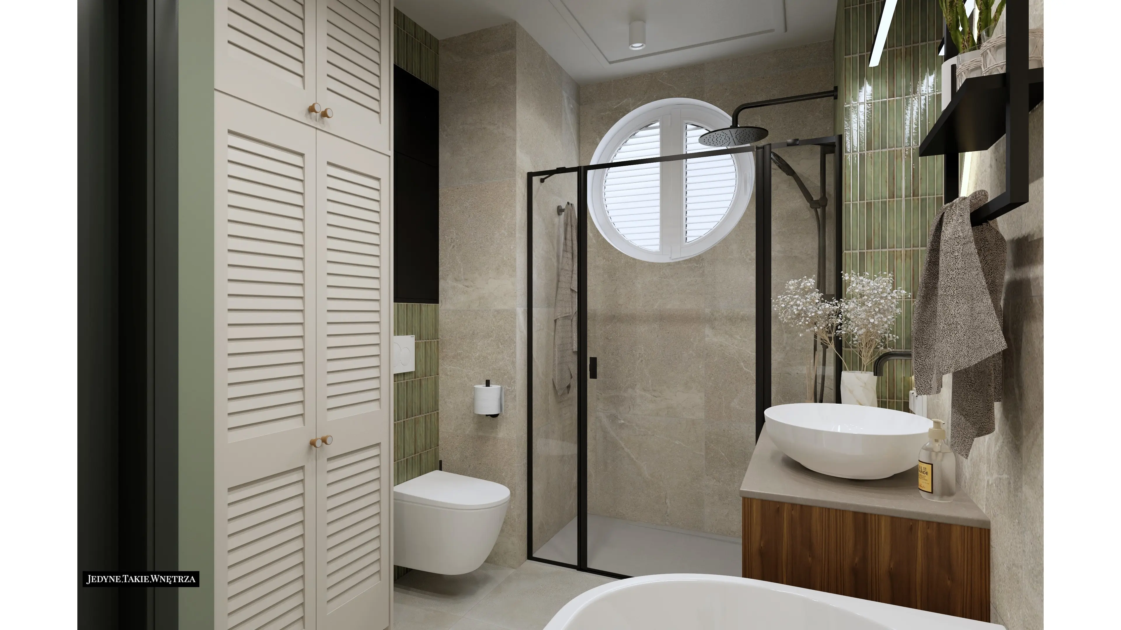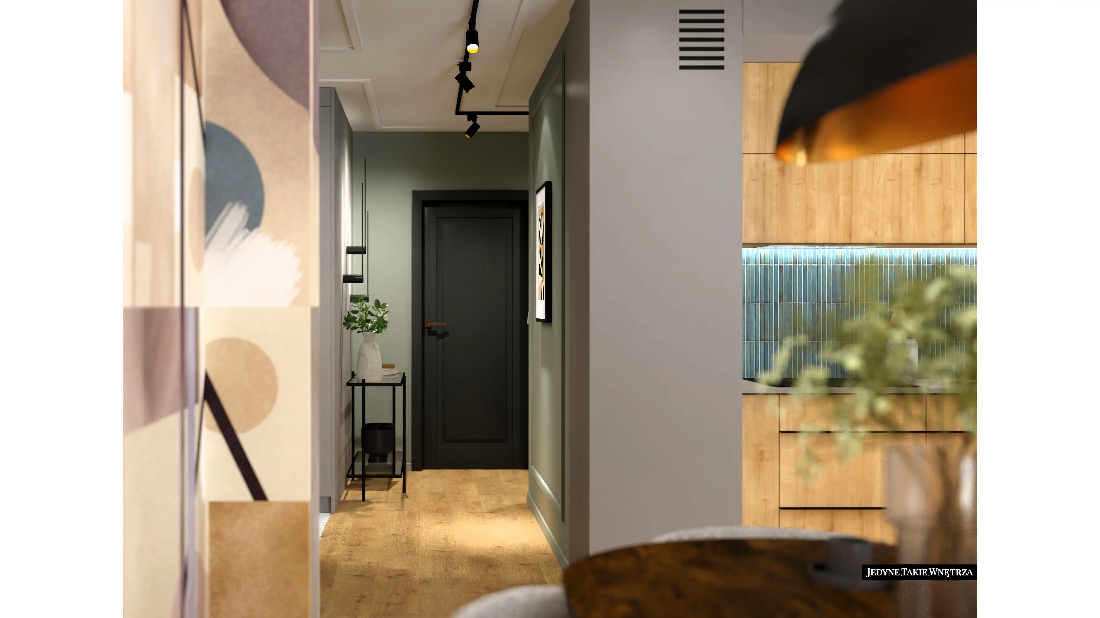 Zieleń&miedź w otoczeniu naturalnej deski – projekt wnętrz domu Gdańsk