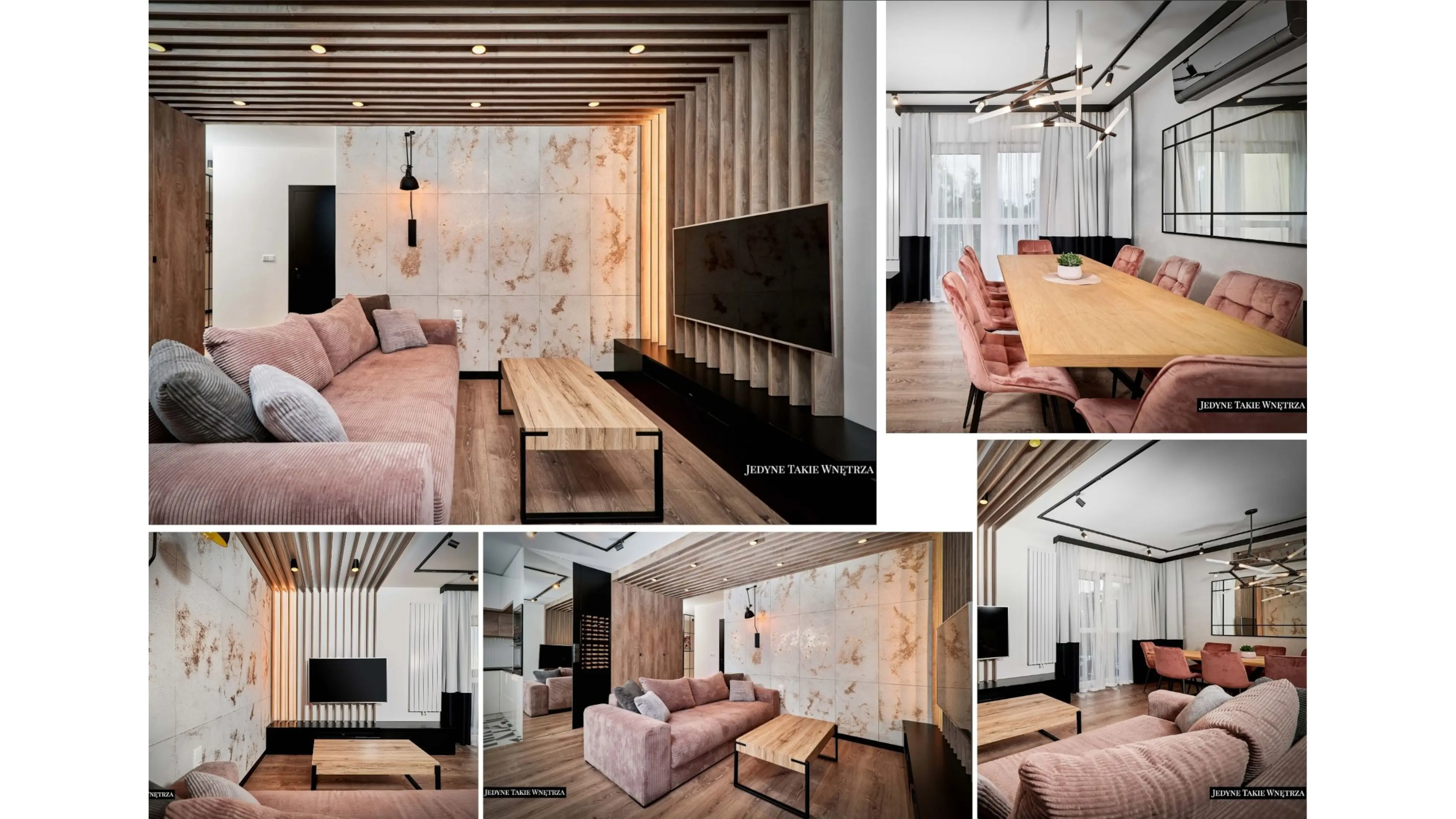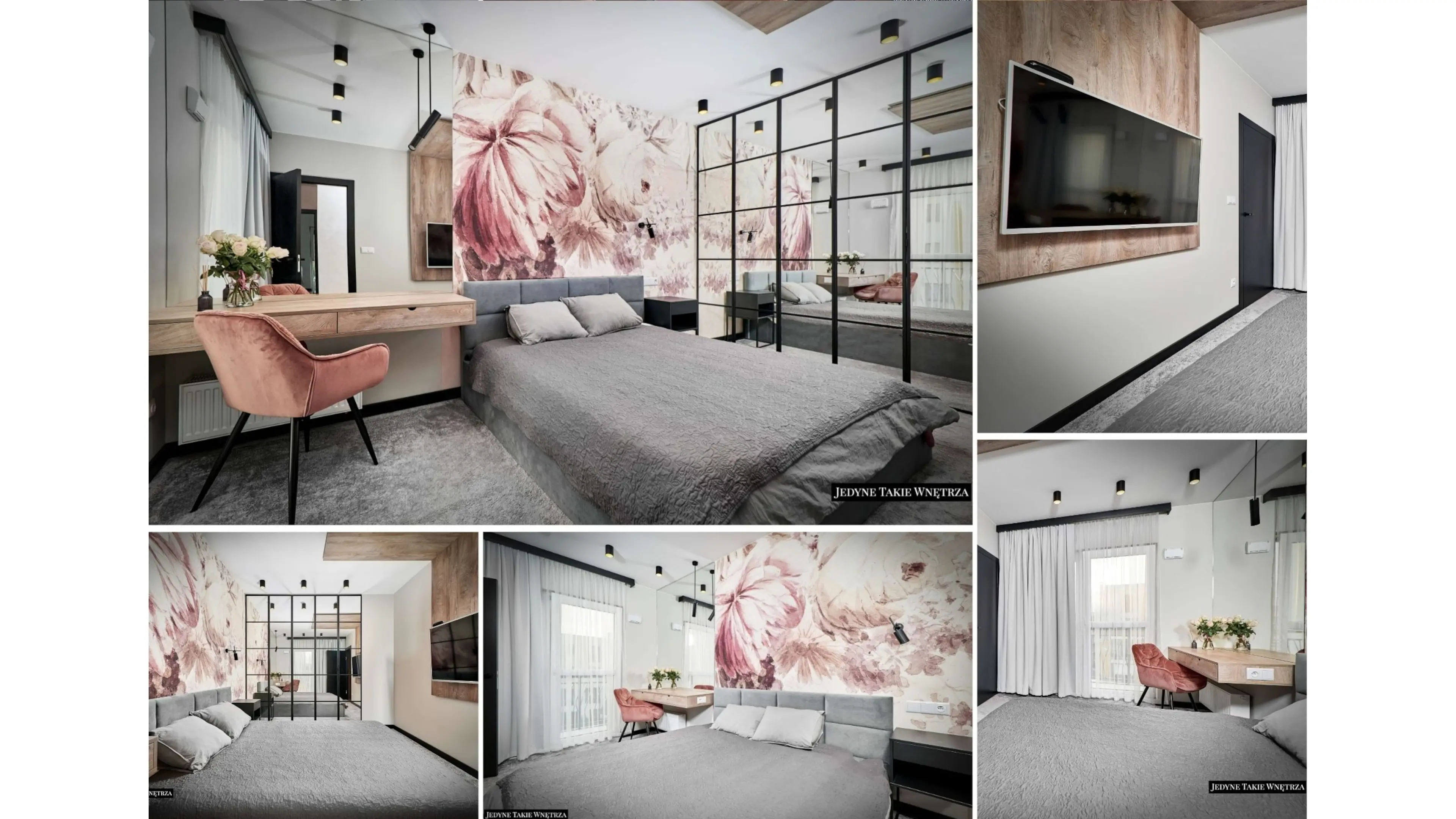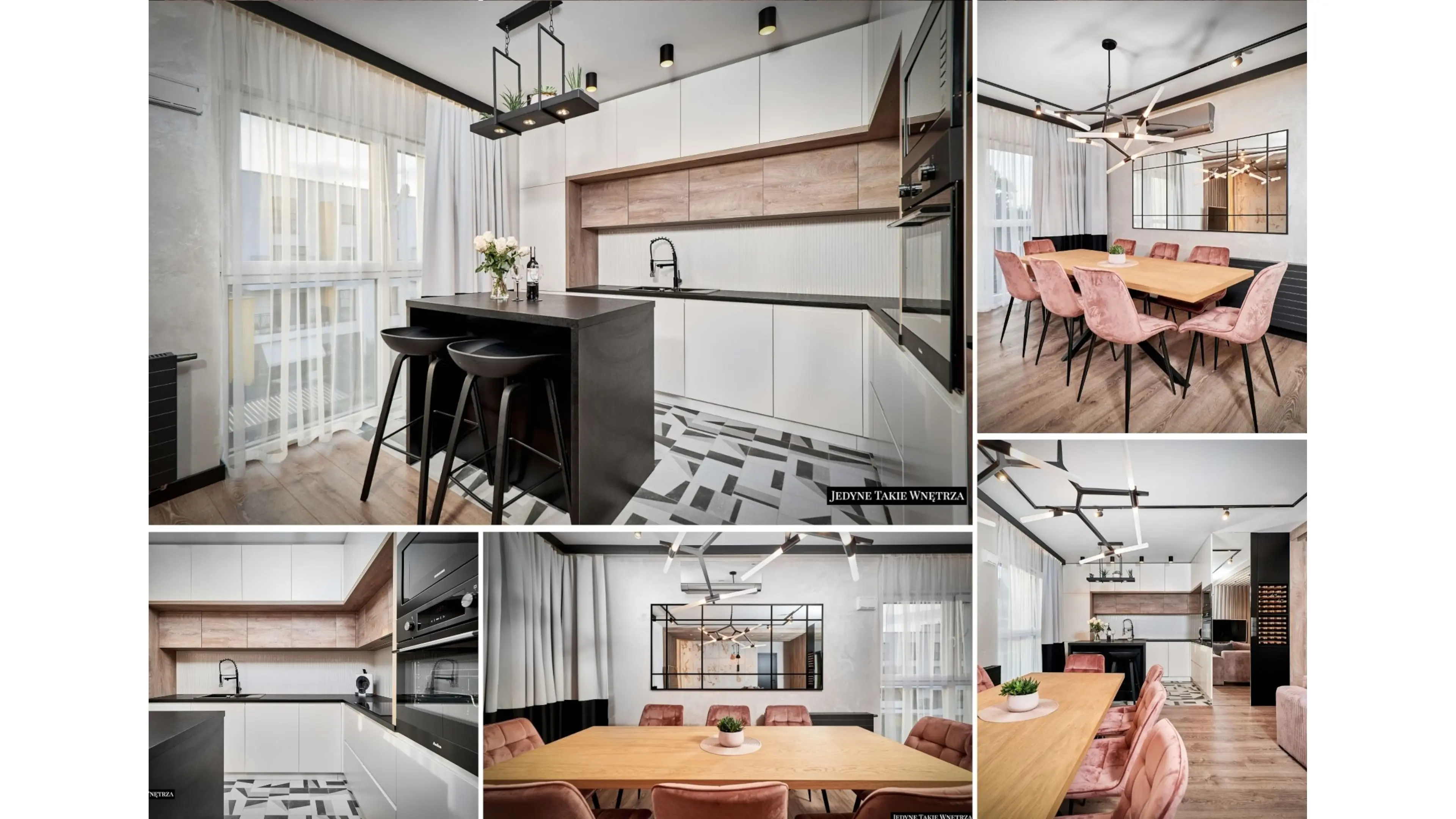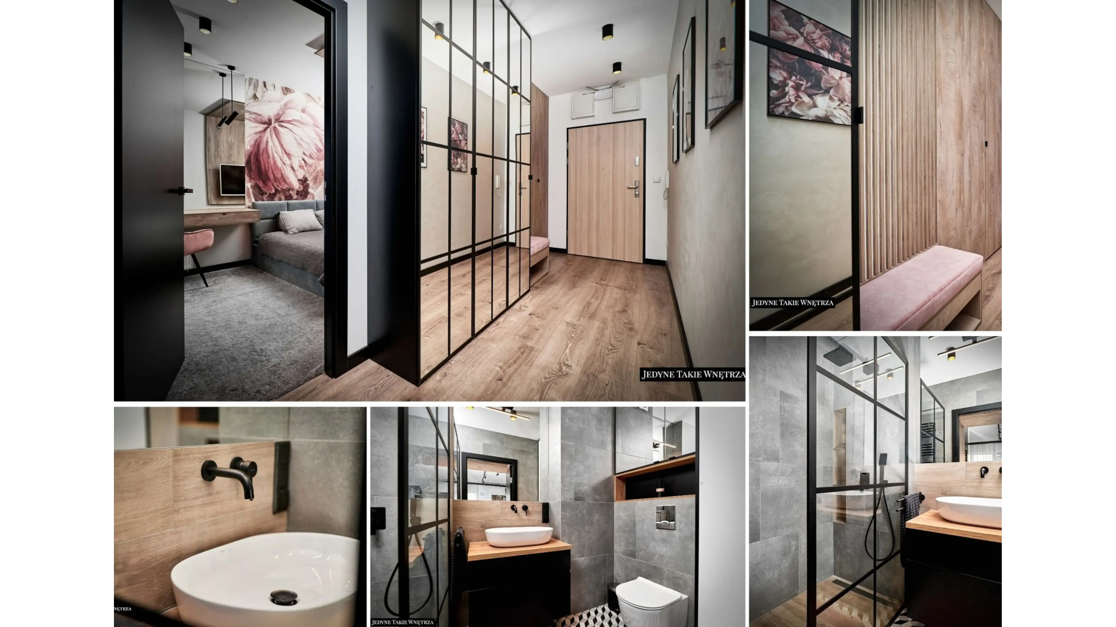 Kompleksowy projekt wnętrza wykonany zdalnie obejmował salon z kuchnią, sypialnię, łazienkę i przedpokój.