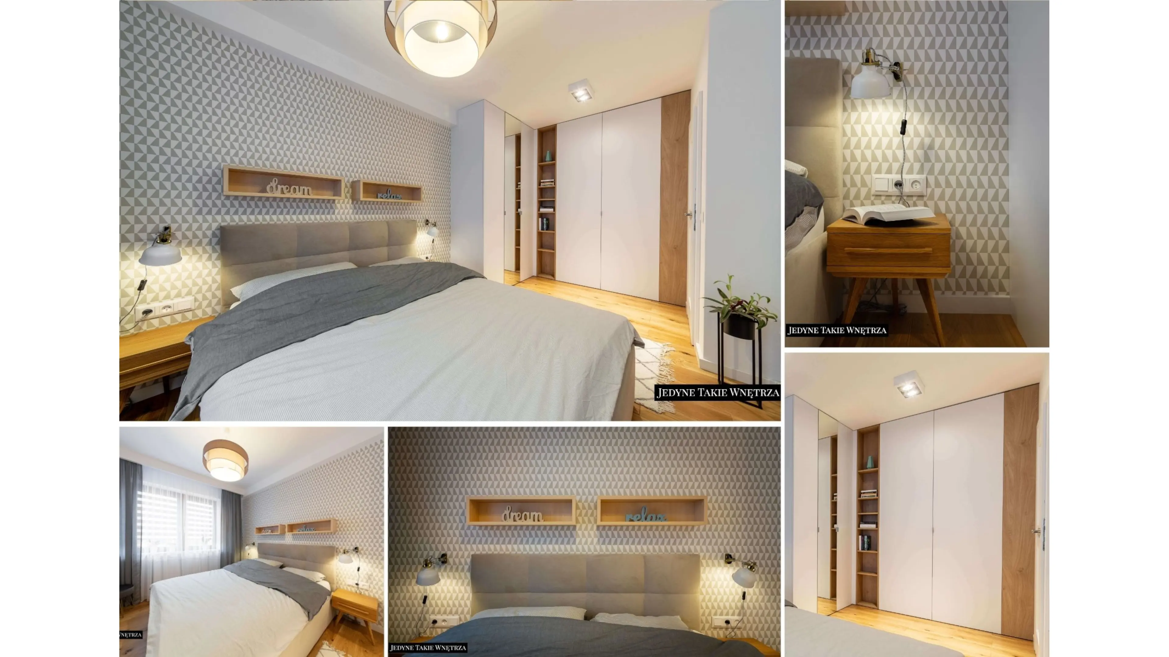 Projekt wnętrza apartamentu w Krakowie obejmujący salon z aneksem kuchennym, przedpokój z korytarzem, sypialnię i dwie łazienki. Całość utrzymana w stylu skandynawskim z wyrazistym i przytulnym wydźwiękiem. W salonie zdecydowano się na wyspę kuchenną, która nie tylko ułatwia przyrządzanie posiłków, a jednocześnie rozgranicza strefę dzienną od strefy kuchennej. Rolę dominanty w pomieszczeniu pełni stojący naprzeciw telewizora wypoczynek koloru pastelowej brzoskwiniowego. Taki zabieg ociepla i jednocześnie ożywia wizerunek przestrzeni, dodając jej kreatywnego tonu. Monochromatyczny korytarz prowadzi od drzwi wejściowych do pokoju dziennego i sypialni. W sypialni zastosowano połączenie beżu, ponownie pastelowych ścian oraz akcenty złotego, co dało inspirujący rezultat. Wnętrze emanuje spokojem, jednak nie ma w nim miejsca na nudę przy tak subtelnym doborze kolorów i dodatków. Geometryczna tapeta będąca tłem dla podwójnego łóżka dopełnia całość. Łazienka w odcieniach kawy z mlekiem z heksagonalnymi płytkami wspinającymi się po ścianach jest propozycją, która spodoba się każdemu wielbicielowi stylu skandynawskiego. W jej wnętrzu znajdziemy m.in. wolnostojącą owalną wannę, natomiast w drugiej łazience, która jest jej kolorystycznym dopełnieniem – wyróżnioną szarością kabinę prysznicową typu walk-in.