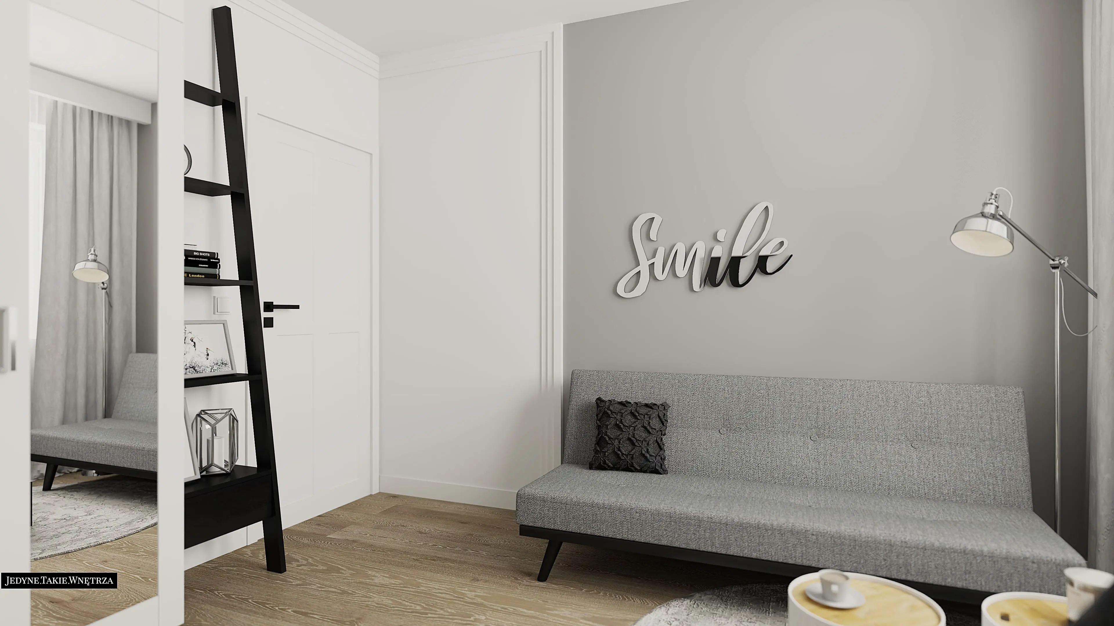 Aranżacja gabinetu i pokoju gościnnego w stylu glamour stanowi część projektu wnętrza mieszkania w Krakowie.