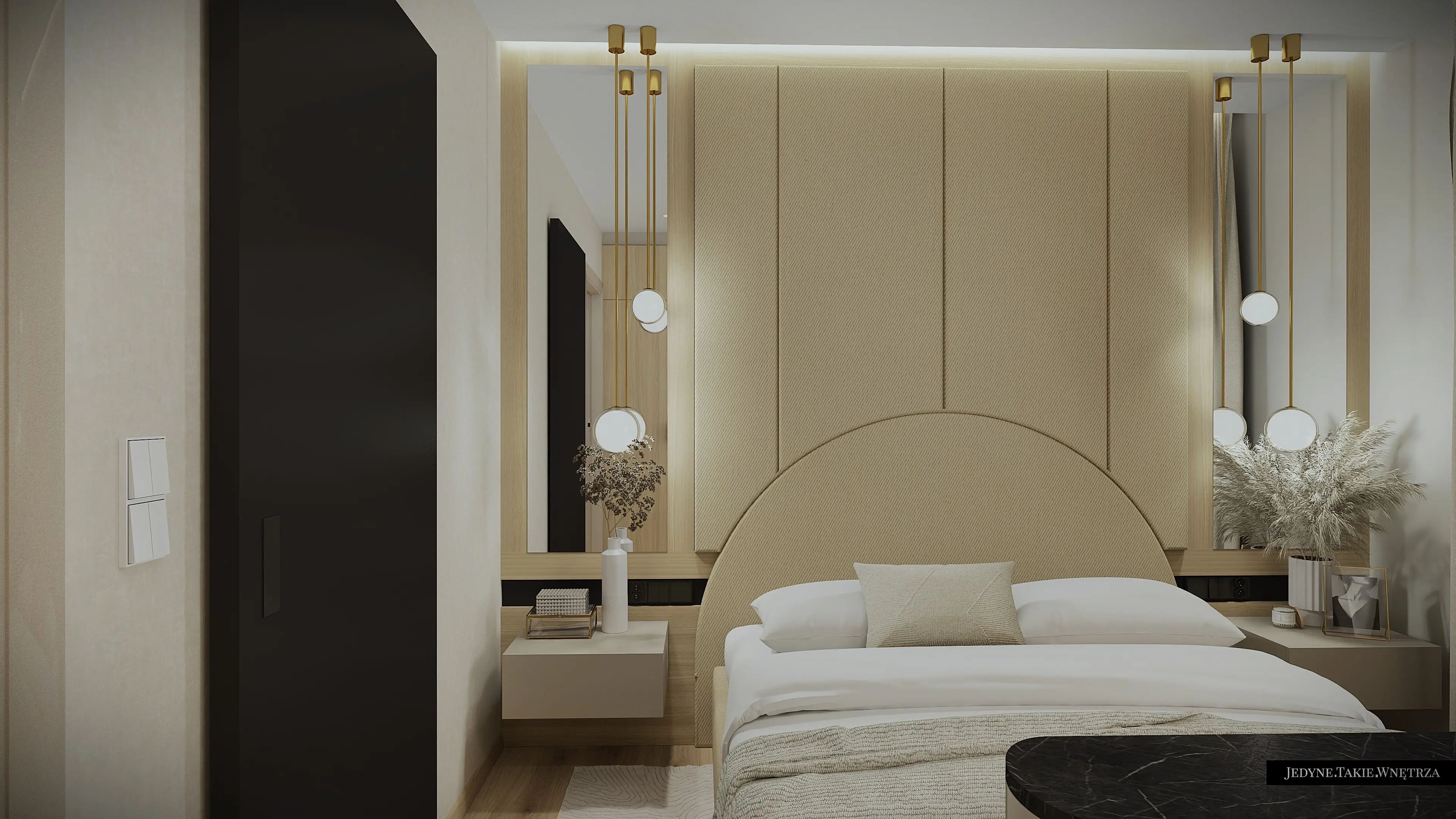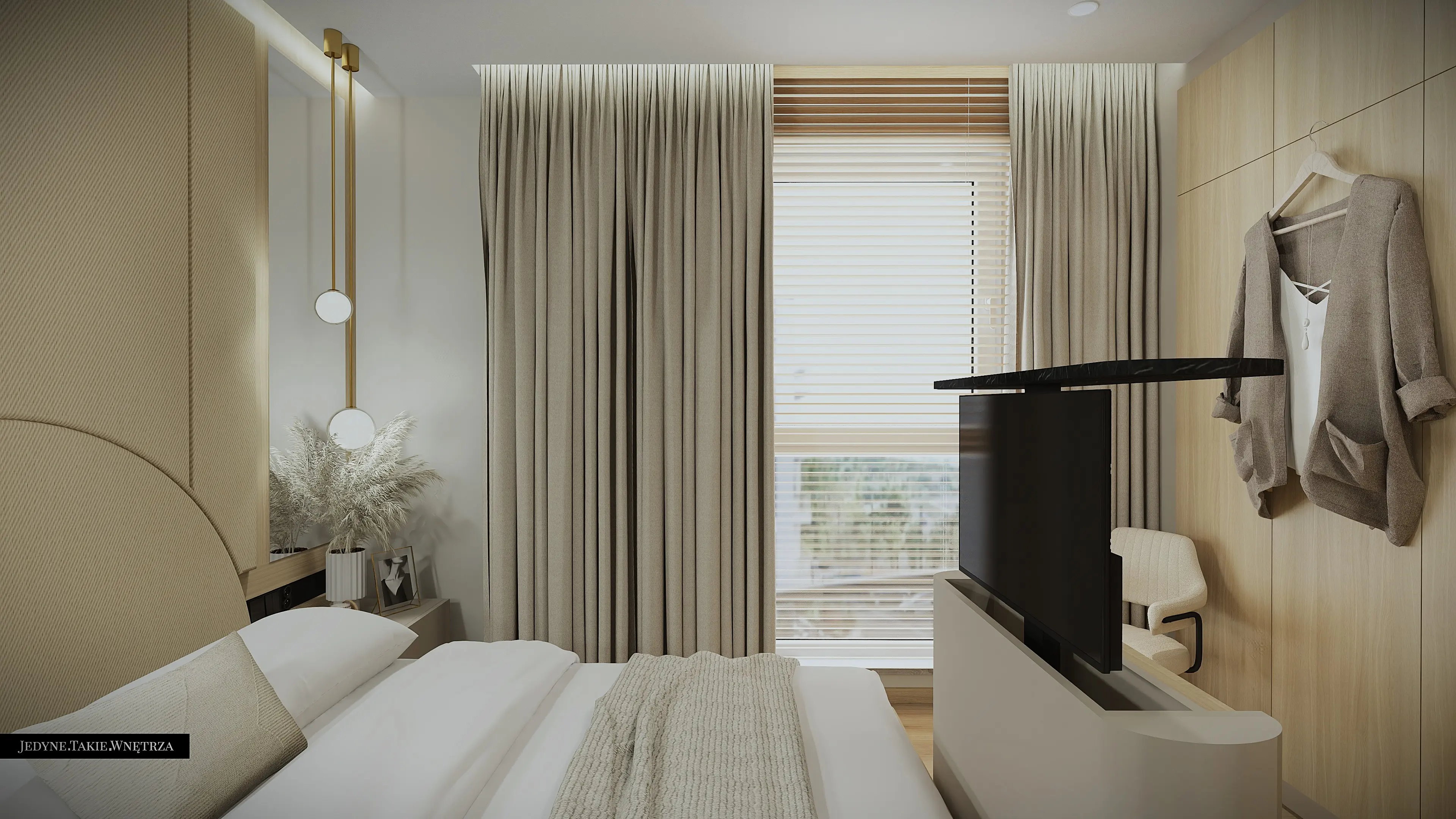 Aranżacja sypialni z wielofunkcyjną szafką stanowi część